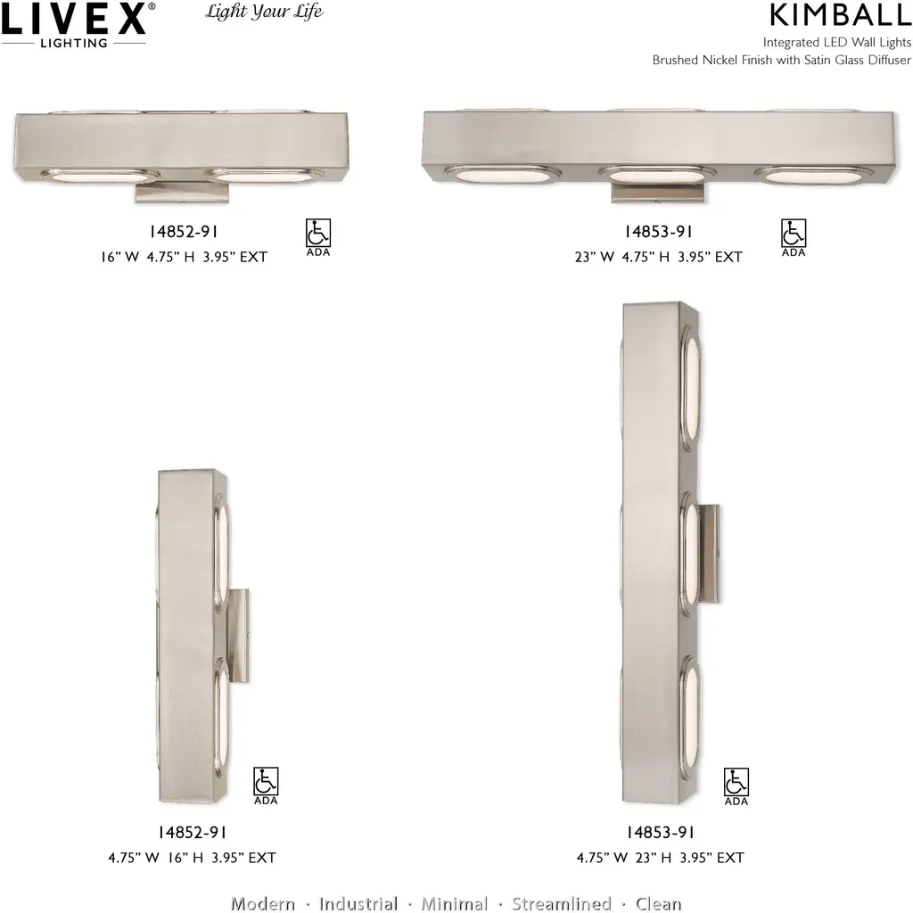 Kimball Led 16 Inch Brushed Nickel Ada Bath Vanity Wall Light