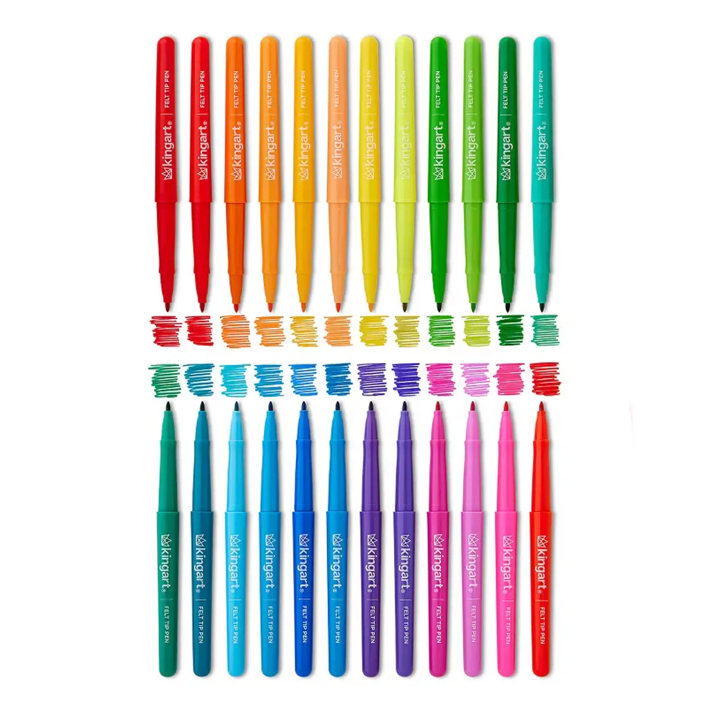 Twenty-Four (24) Unique Colors Color chart pre-printed on packaging - see listing below. Variety of bright colors Bright colors make your writing POP Medium Tip makes bold, expressive marks High pigment, smear-resistant, water-based ink Great for art projects, corrections or color coding notes Featuring a no-fray felt tip in medium width for detailing and fills Durable plastic exterior with matching cap and metal clip Conforms to ASTM D4236