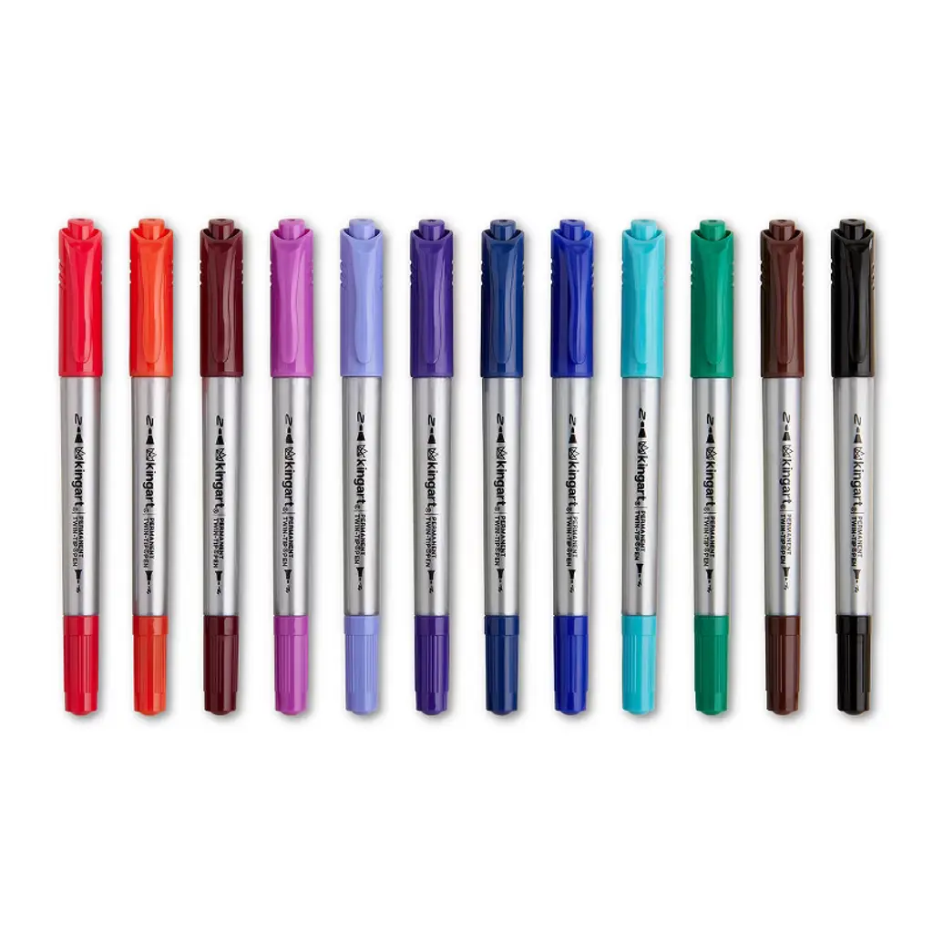 Kingart Permanent Twin-tiptm Pens 12 Colors