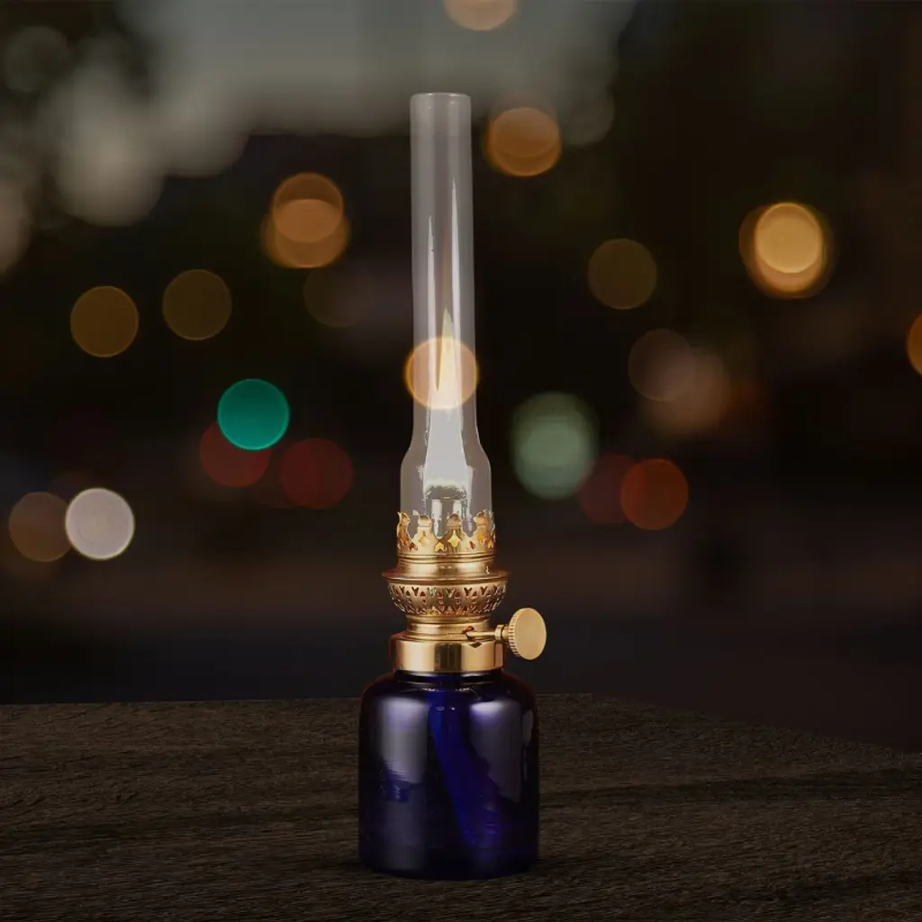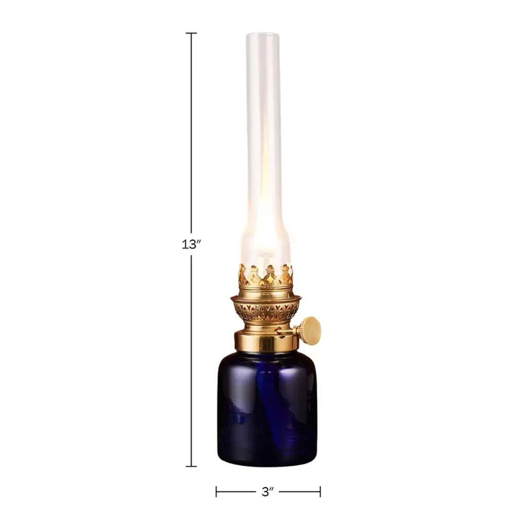Kings County Tools 13in Tall Brass Oil Lamp, Blue