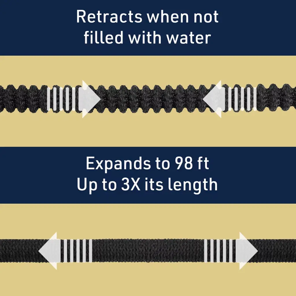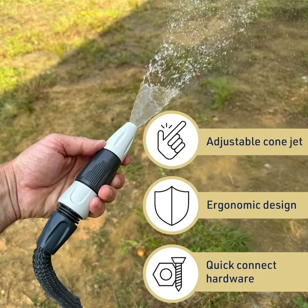 Take the hassle out of garden and lawn watering with the ultra-lightweight Garden Hose Expandable by Kings County Tools. This heavy duty hose is made of interlocking fabric fibers that not only make it extremely durable for long-lasting use but also make the outside hose incredibly lightweight at just 3.4lbs for easy handling and portability. Thanks to the flexible, kink-resistant design, the expandable water hose can be maneuvered around corners with ease, making it ideal for lawn or garden watering, for washing cars, or use it as a connector hose for hose reel.