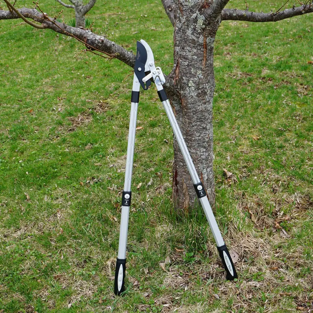 These pruning bypass loppers are designed with an oversized ratcheting mechanism to let you put more power into every cut for branches up to 2 inches thick. The telescoping handles of our extendable loppers go from 26 inches to a full 40 inches with 6 pin stops and rubber grips.Our Ratcheting Pruning Loppers give you a ton of cutting power and plenty of reach. We cannot recommend these enough for heavy work: they are superb. The Bypass Pruner is perfect for green wood. Exclusive.Also available is a replacement blade and a set of both the Anvil and Bypass Loppers.