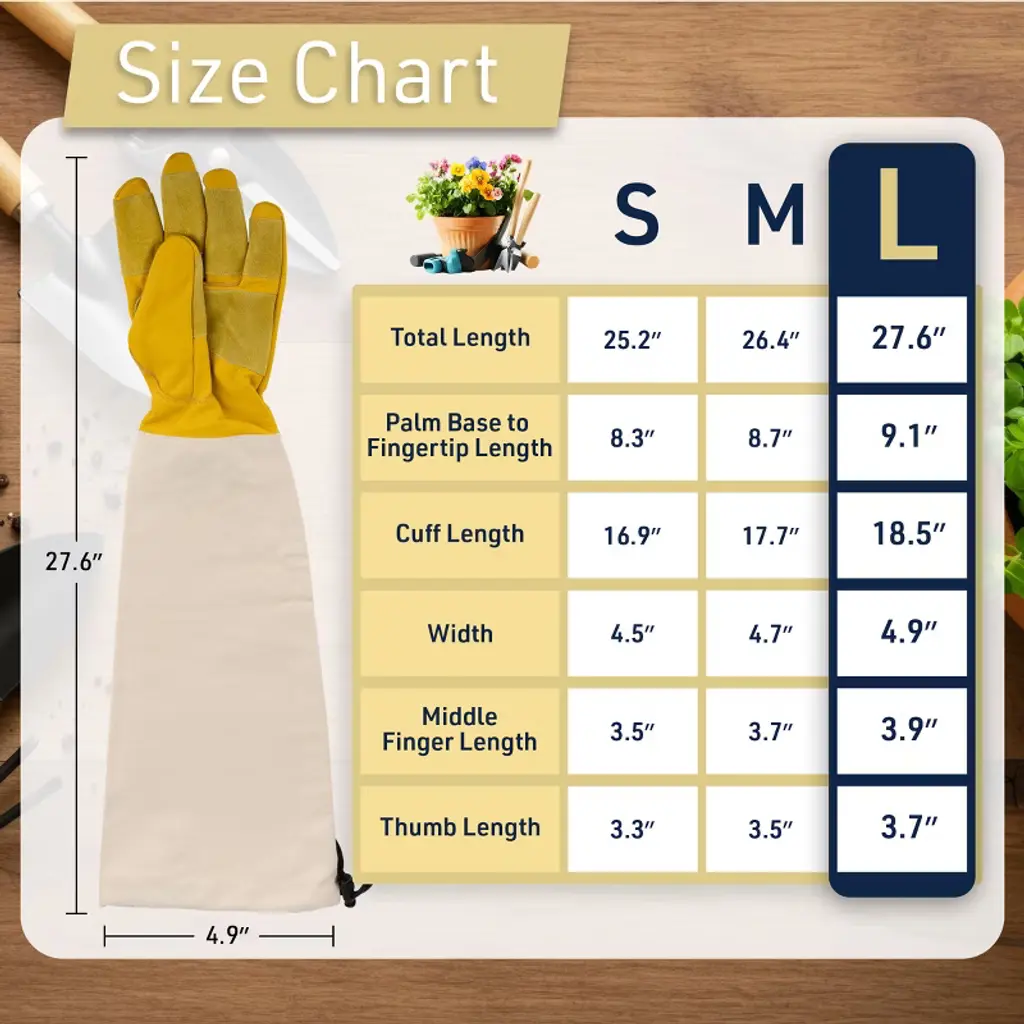 Tackle big tasks in your garden, yard, or the thorny woods at the edge of your property with the Bramble Garden Gloves by Kings County Tools. These mens and womens garden gloves offer protection for your hands and arms, with integrated canvas arm protectors that extend past your elbows, so you’ll be ready for everything from roses, blackberries, cacti, and other thorny plants to the nastiest patches of poison ivy or oak. These thorn proof gloves are must-haves for pruning, planting, or weeding, with cowhide leather on the palms and backs of the hands ensuring resilience against pokes and sharp edges. Elastic at the wrists ensures a secure fit, and the supple but tough cowhide gives you all the flexibility you’ll need to work in tight spaces.