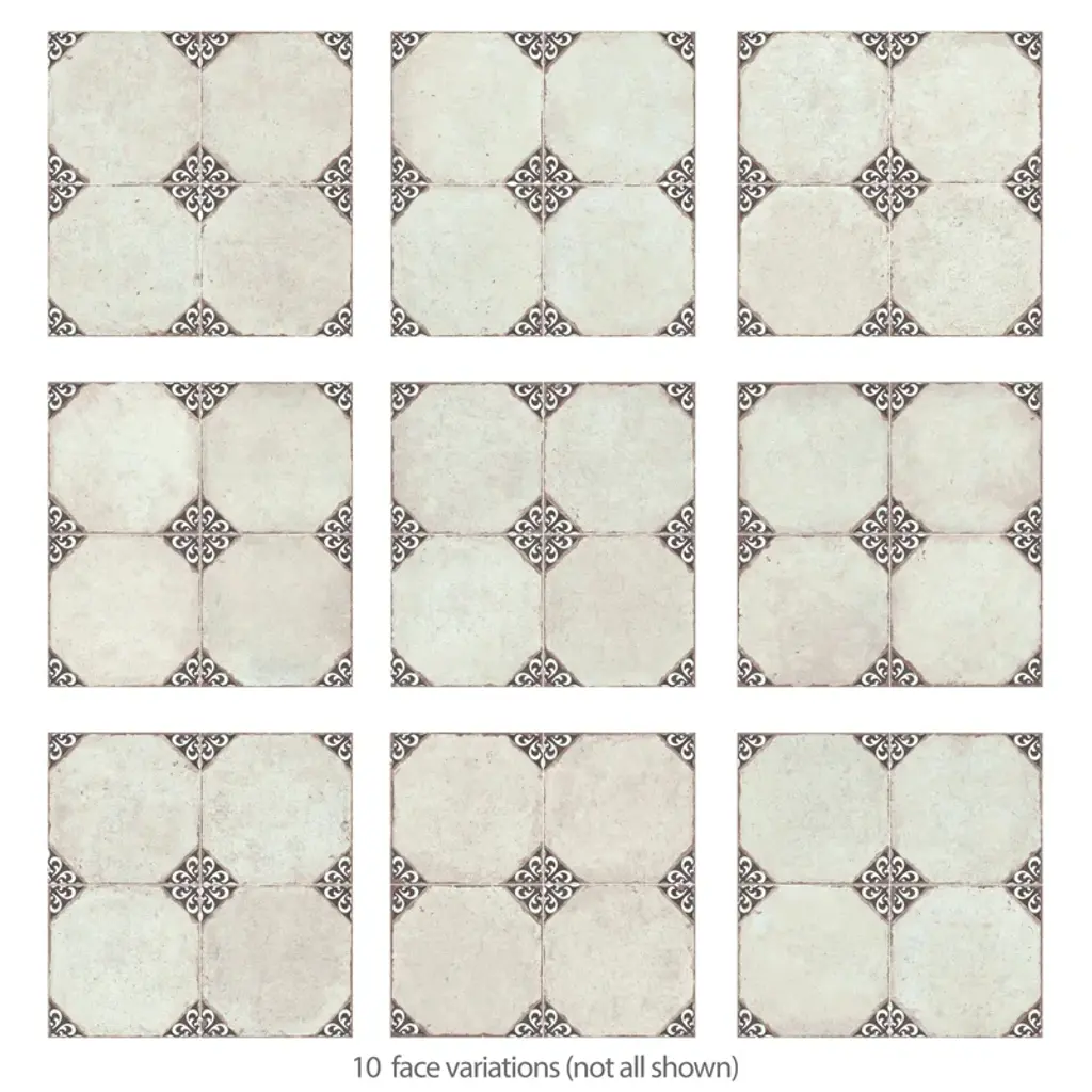 Capturing the appearance of a patterned look, our Kings Field Porcelain Floor and Wall Tile provides decorative appeal that adapts to a variety of stylistic contexts, making it a great choice for your space. Experience the warmth and authenticity of Spanish countryside with the Kings Field Porcelain Tile Collection, featuring a mixed finish of matte white and glossy insets, inspired by traditional ceramic tiles, and versatile for any design project. With its impervious, frost-resistant features, this square tile is an ideal selection for both indoor and outdoor installations, including bathrooms, backsplashes, showers, hallways, entryways, patios and fireplace facades. This tile is a perfect choice on its own or paired with other products in the Kings Field Collection. Tile is the better choice for your space!