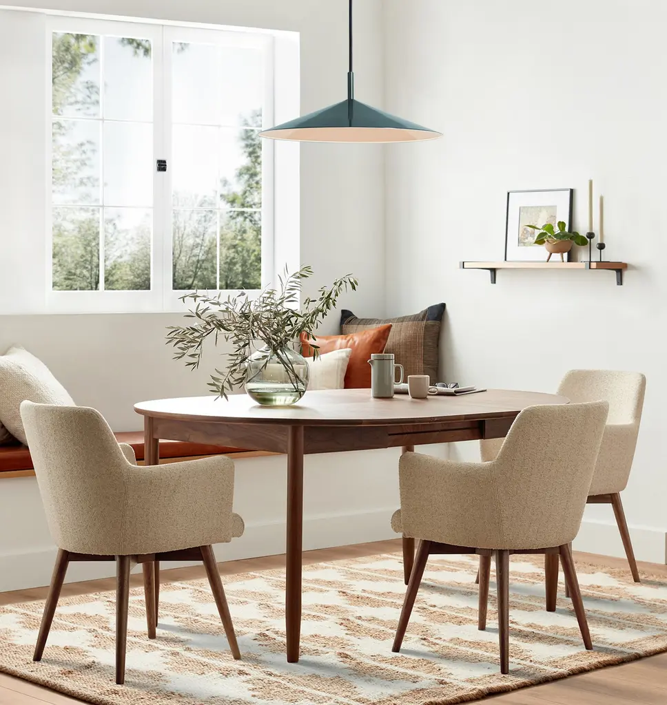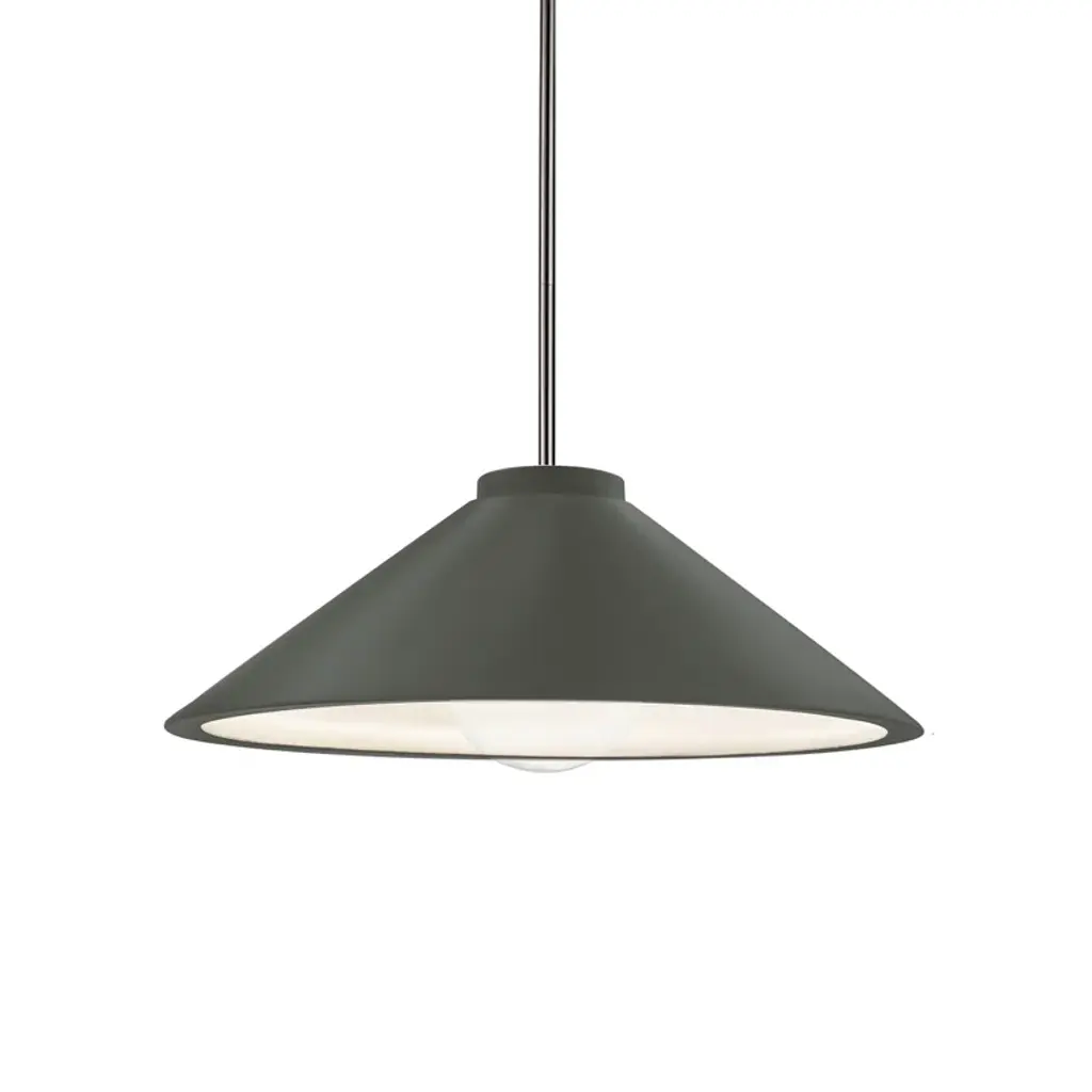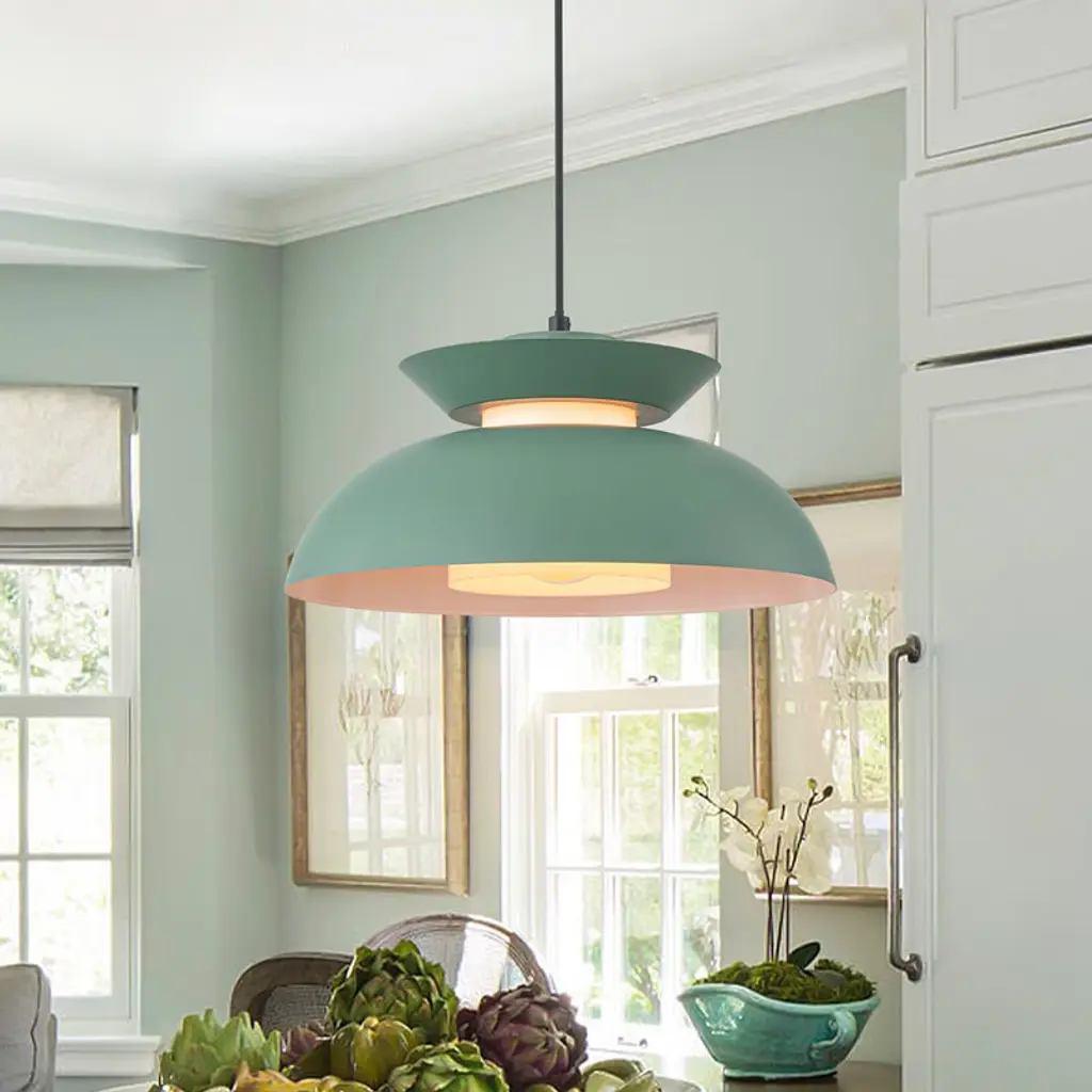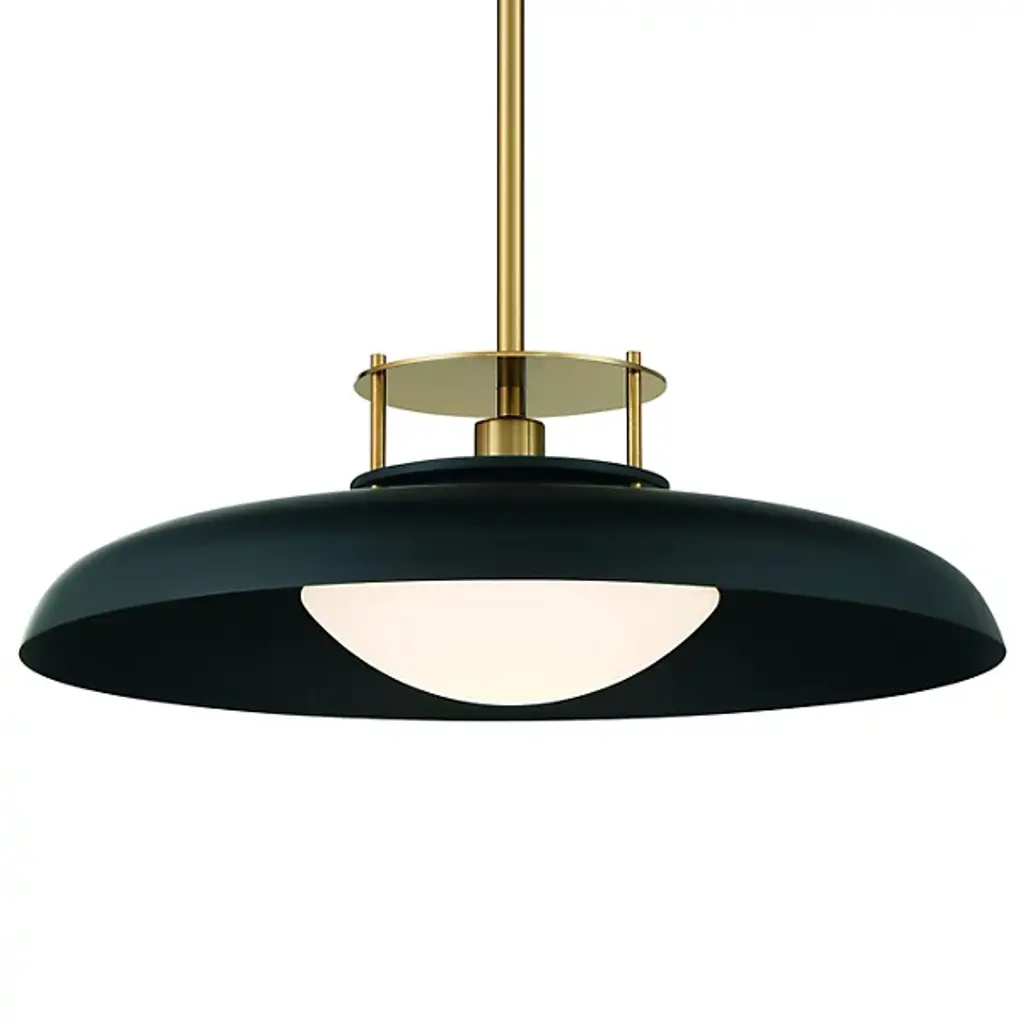 An updated take on a 1960s Scandinavian-inspired design, our Kingston Pendant features an oversized, low profile metal shade that adds a contemporary touch over any kitchen island or breakfast nook. Available in several sizes and colors.