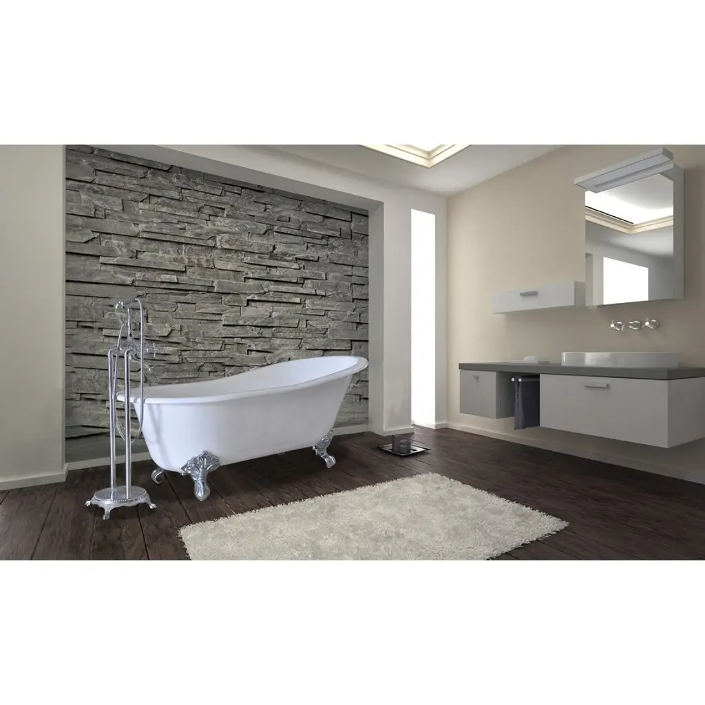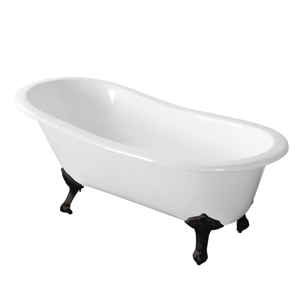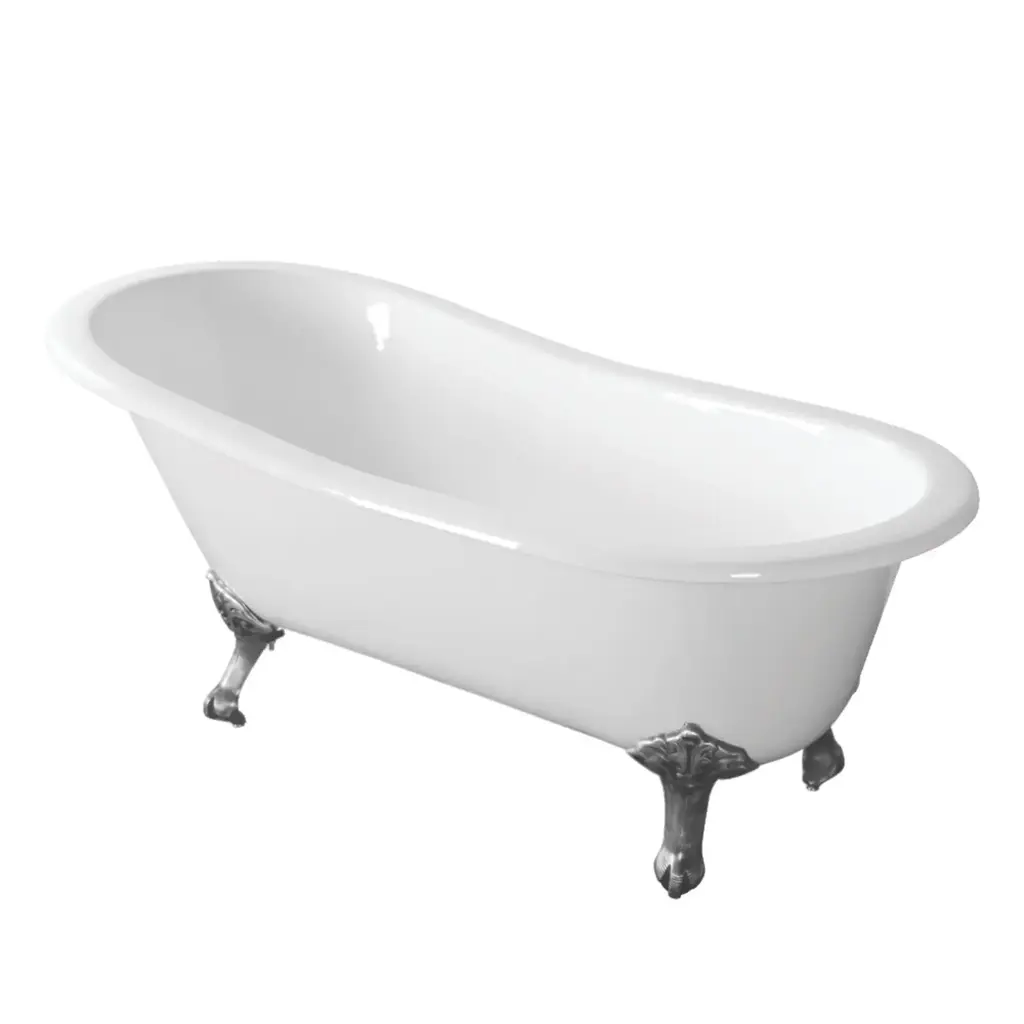 Surround yourself with the perfumed aroma of your favorite candle, grab your favorite piece of literature, and soak all of the stresses of the day away with the all-encompassing embrace of one of Kingston' finest products, the clawfoot tub. Since the late 19th century, the claw foot tub has stood prominent among bathroom fixtures for its outstanding grandeur. The Kingston Aqua Eden67-inch cast iron single slipper clawfoot tub (no faucet drillings) will wholly beautify your home for years to come thanks to its durable and heavy cast iron construction. Elegantly crafted clawfoot tub feet are included to further elevate your home's traditional eminence. Hand-smoothed painted white exteriorWhite porcelain enamel interiorOverall dimensions: (L)66-15/16" x (W)30-11/16" x (H1)22-13/16" x (H2)29-1/8"Built-in adjuster on tub feet for uneven floorsWater depth is 14-3/8"49.4 gallon tub capacity