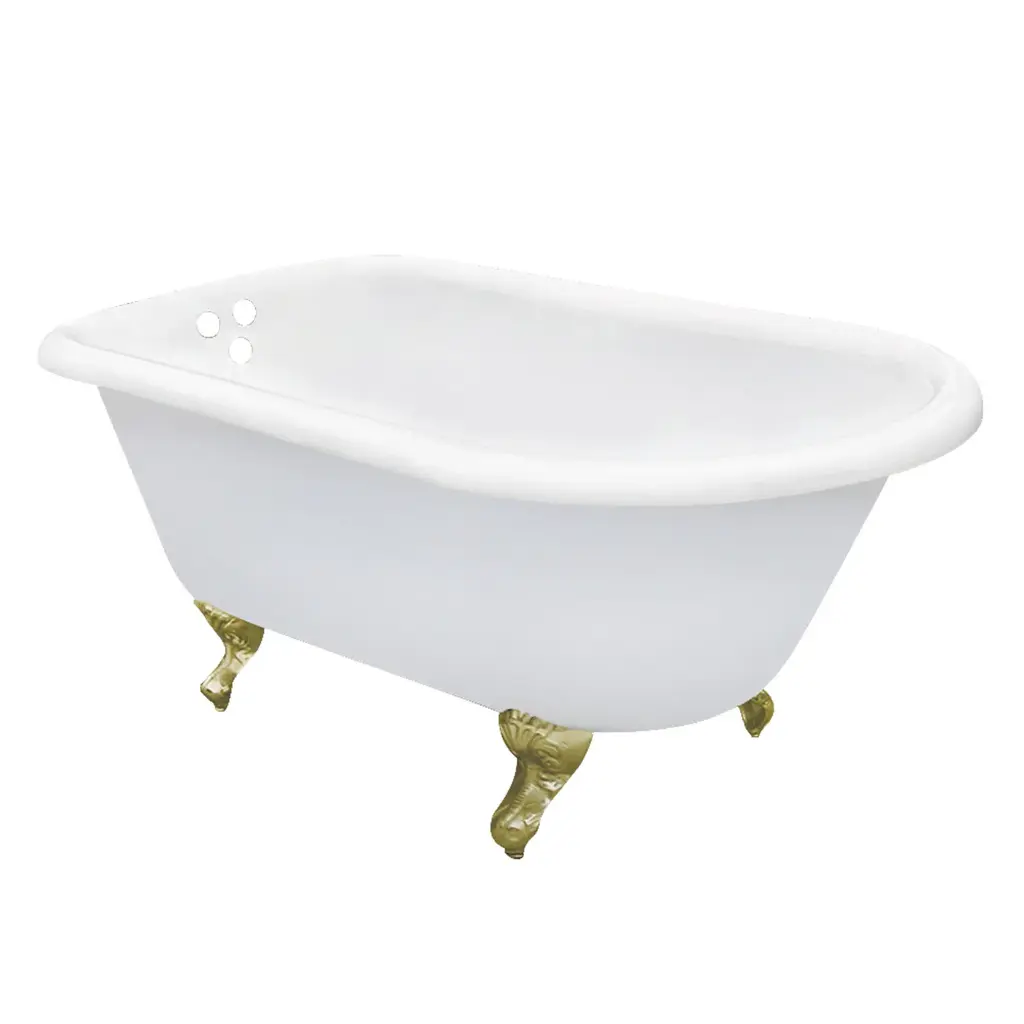 Kingston Brass Aqua Eden 54-Inch Cast Iron Roll Top Clawfoot Tub With 3-3/8 Inch Wall Drillings - White/polished Brass