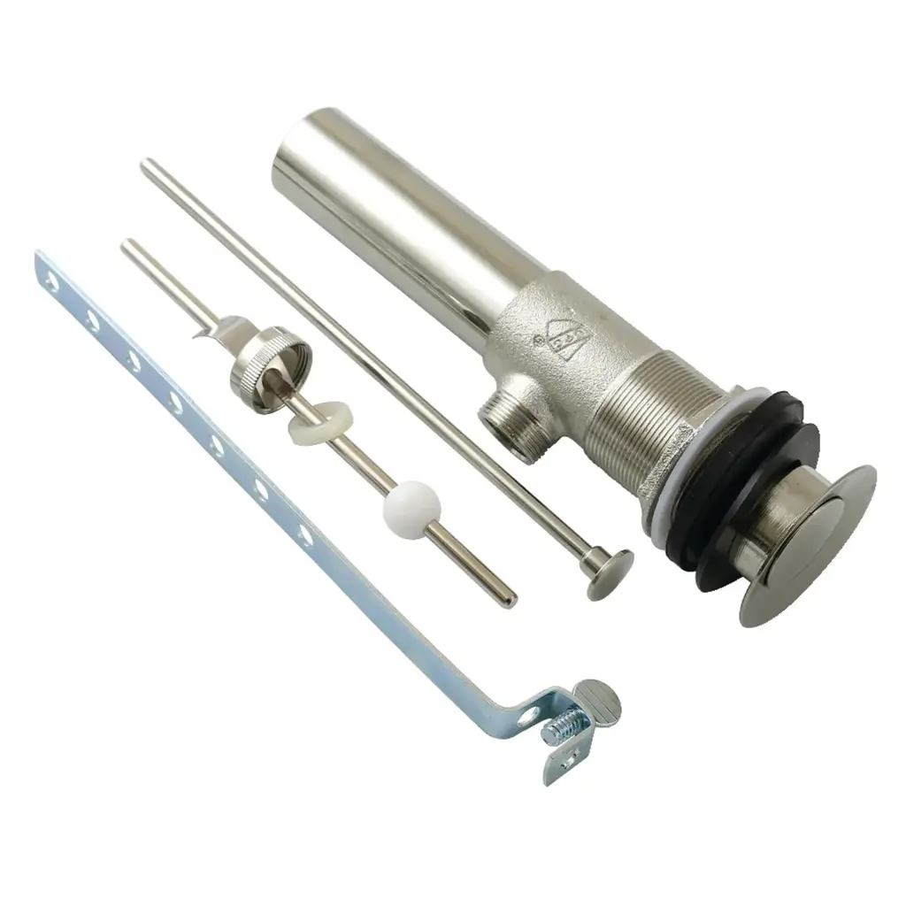 Pop-up bathroom drains feature a decorative rod used to close and open the fixture. Available in multiple finishes to match your faucet, the Trimscape Brass Pop-Up Drain without Overflow will fit standard bathroom sink sizes.FeaturesSolid Brass ConstructionOverall Size: (L)11-7/8 x (W)2-1/8" x (H)10-1/8"1-3/8"-16 UNEFEasy Operation with Front lift Rod DesignFits all standard lavatory drain openingsResists Tarnishing and CorrosionActivated by lever under the sink22 GaugeWith Overflow Hole Design