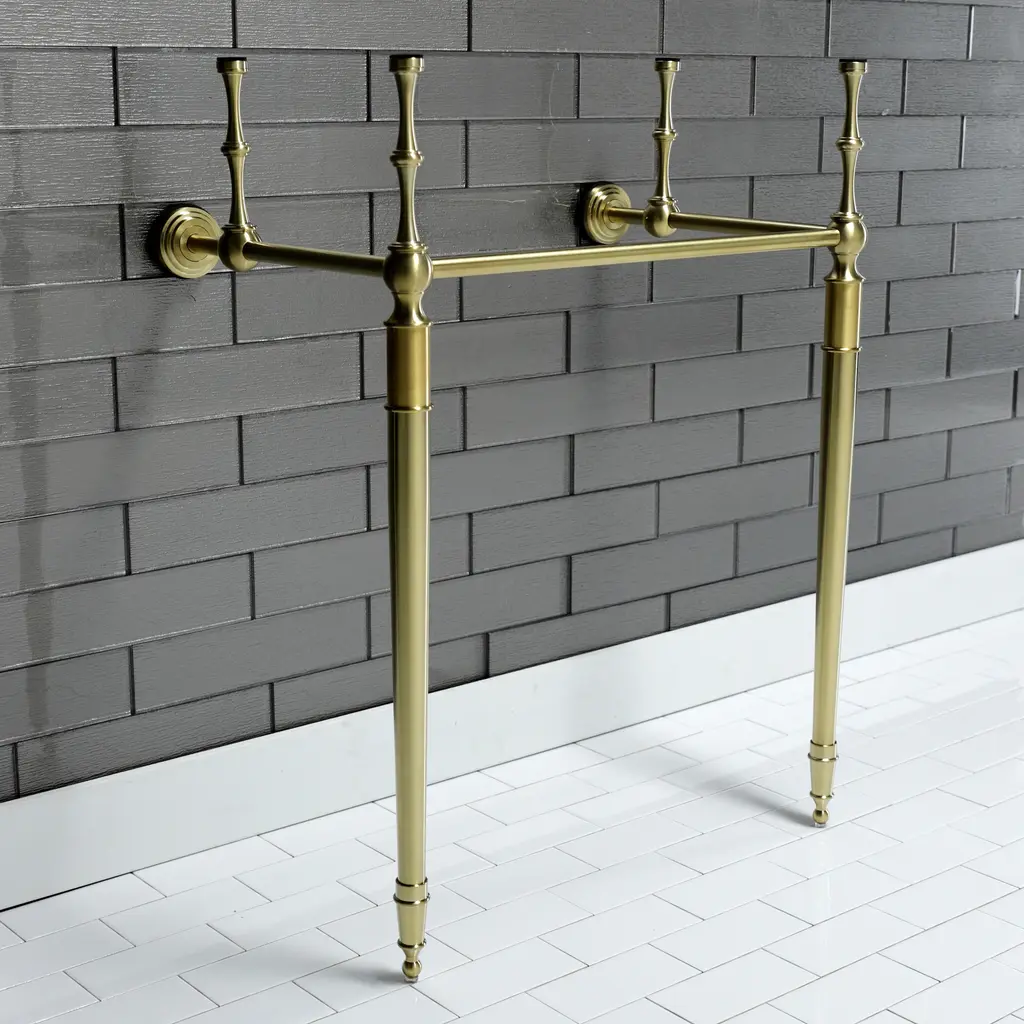 A simple minimalist support for your console sink tops, this sink legs comes in a multitude of finishes that will bring out the shine in your bathroom. The Edwardian 22-inch brass console sink legs is constructed out of brass and is designed for durability and reliability to last for years to come. Pair these legs with a console top, available in multiple materials. Compatible with Kingston Brass sink: LBT24187W1, LBT24187W34, LBT24187W38, and VPB1318B.FeaturesSolid brass construction for durabilityOverall dimensions: (L)22-5/16" x (W)15-7/8" x (H)33"3/4" (19mm) OD brass horizontal tubingSink and top sold separatelyCorrosion-resistant finishDesigned for long-lasting durabilityEasy-to-clean