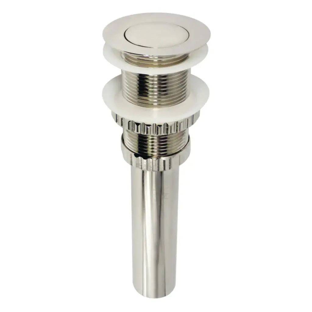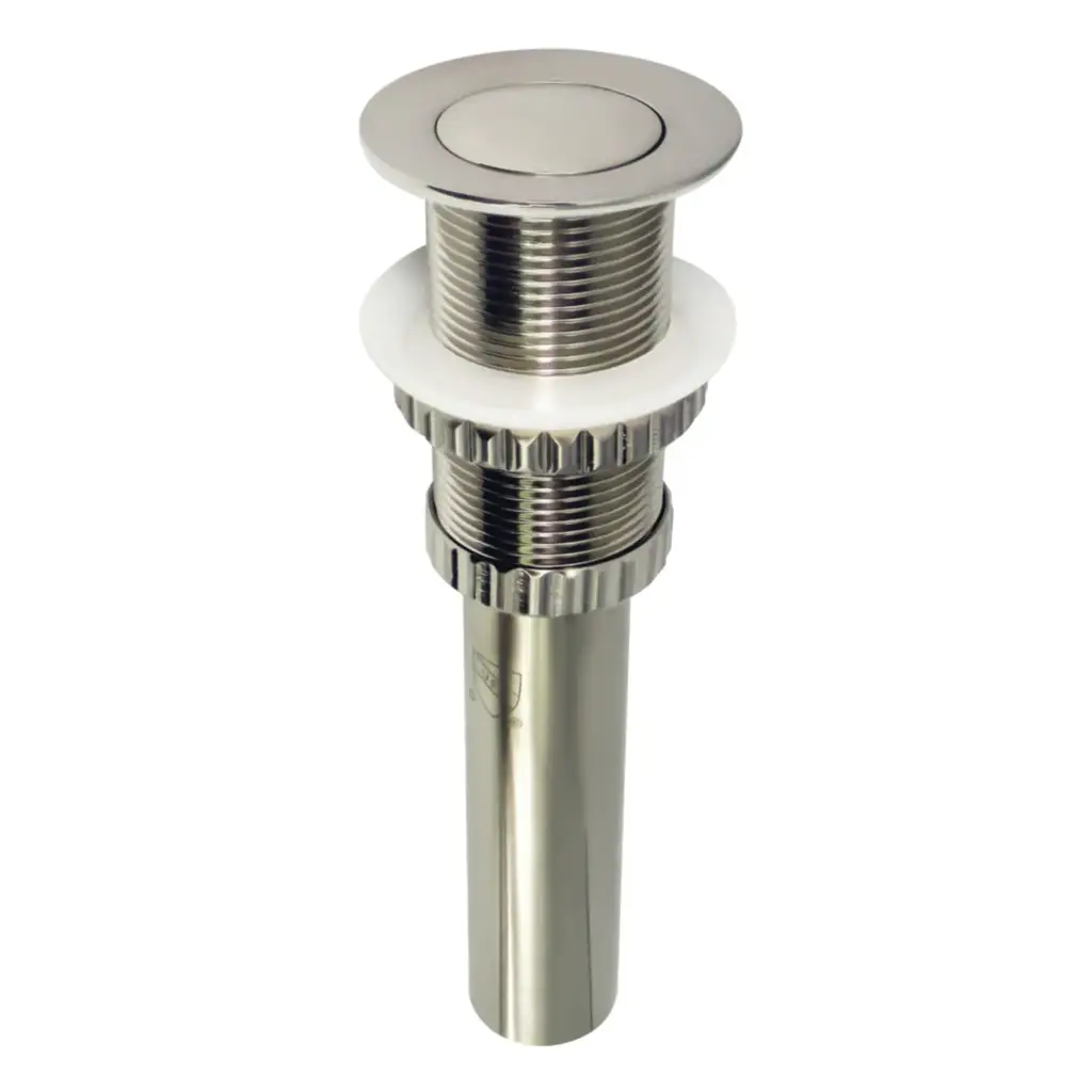 Push-up bathroom drains feature a spring mechanism to easily close and open the fixtures. Available in multiple finishes to match your faucet, the Coronet push pop-up bathroom sink drain without overflow will fit standard bathroom sink sizes.Kingston Brass EV841 Features:Kingston Brass EV841 Specifications: