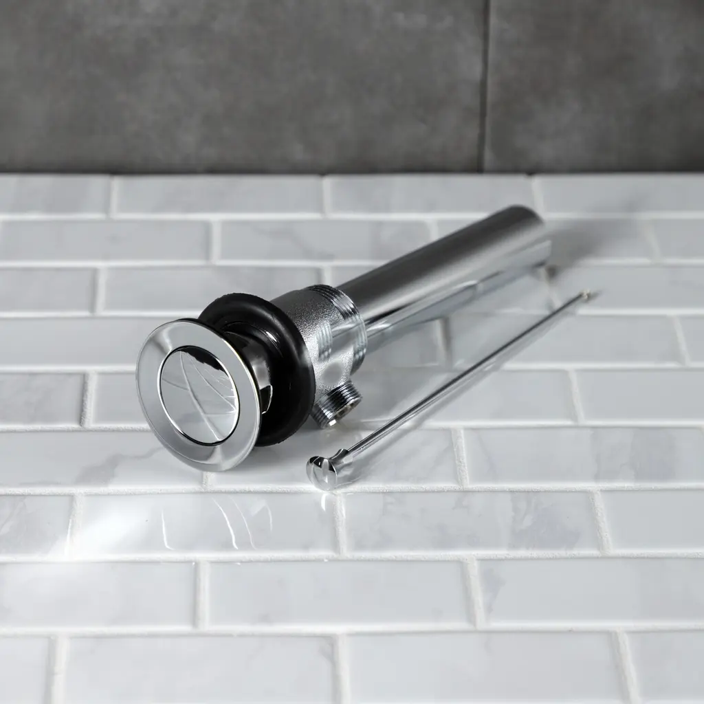 Pop-up bathroom drains feature a decorative rod used to close and open the fixture. Available in multiple finishes to match your faucet, the Kingston Brass Made To Match brass pop-up drain with overflow will fit standard bathroom sink sizes. In particular, this pop-up drain contains a 16-inch extra long pop-up rod.FeaturesHigh quality brass construction to give you long lasting durability1-1/4" O.D. tailpieceOverall size: (L) 7-11/16" x (W) 2-1/2" x (H) 9-1/4"Scratch, corrosion and tarnish-resistant finish offers durability and years of beautyFits standard 1-3/4" opening with overflow16" extended pop-up rod for added versatilityWith overflow designEasy installation save you time and effortDesigned for long-lasting durabilityMounting hardware includedProp 65 disclaimerWARNING: This product can expose you to chemicals, including lead which is known to the State of California to cause cancer or birth defects or other reproductive harm, for more information, go to www.p65warnings.ca.gov