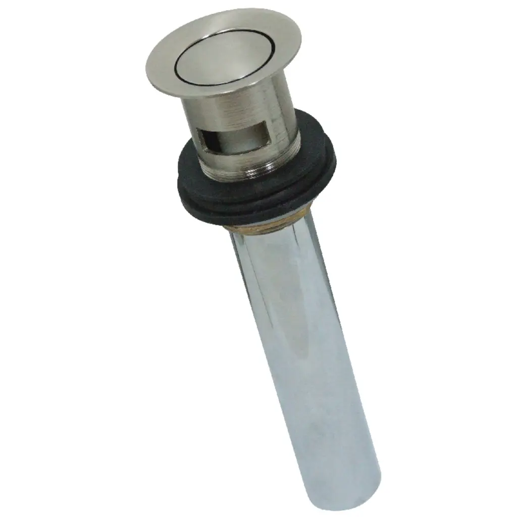 Push-up bathroom drains feature a spring mechanism to easily close and open the fixtures. Available in multiple finishes to match your faucet, the Trimscape Brass Push Pop-Up Drain with Overflow will fit standard bathroom sink sizes.FeaturesConstructed from solid 22 gauge brass for durability and reliability1-1/4" O.D. tailpieceOverall size: (L) 2" x (W) 2" x (H) 8-3/8"Premium color finish resist tarnishing and corrosionFits standard 1-5/8" openingPush pop-up mechanismWith overflow designEasy installation save you time and effortDesigned for long-lasting durabilityMounting hardware includedProp 65 disclaimerWARNING: This product can expose you to chemicals, including lead which is known to the State of California to cause cancer or birth defects or other reproductive harm, for more information, go to www.p65warnings.ca.gov
