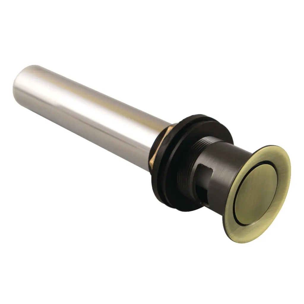 Push-up bathroom drains feature a spring mechanism to easily close and open the fixtures. Available in multiple finishes to match your faucet, the Trimscape Brass Push Pop-Up Drain with Overflow will fit standard bathroom sink sizes.FeaturesConstructed from solid 22 gauge brass for durability and reliability1-1/4" O.D. tailpieceOverall size: (L) 2" x (W) 2" x (H) 8-3/8"Premium color finish resist tarnishing and corrosionFits standard 1-5/8" openingPush pop-up mechanismWith overflow designEasy installation save you time and effortDesigned for long-lasting durabilityMounting hardware includedProp 65 disclaimerWARNING: This product can expose you to chemicals, including lead which is known to the State of California to cause cancer or birth defects or other reproductive harm, for more information, go to www.p65warnings.ca.gov