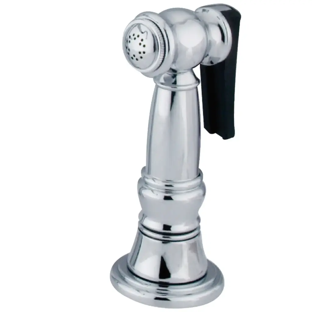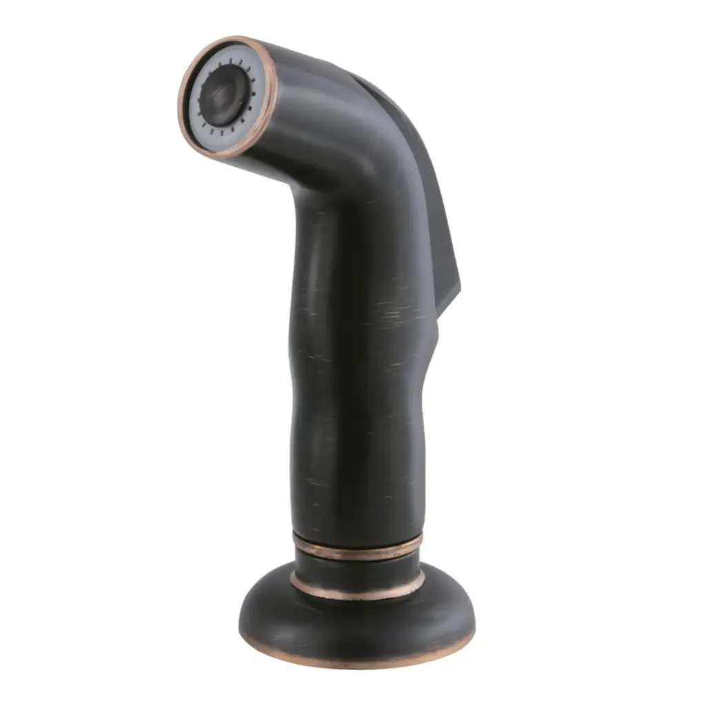 The Kingston Brass kitchen side spray, constructed of brass, can be used to replace or in select instances upgrade or update your kitchen faucet's existing side spray. This item can only be used with side spray compatible faucets and should not be installed in alternate configurations. Available in multiple finishes to match your faucet. Includes 60" grey hose sheathed in braided PVC for durability and cleaning chemical resistance.FeaturesHigh quality brass and PVC construction1-15/16" shank height fit to most countertopIncludes 60-inch grey braided PVC hose1/4-18 NPS connectionSingle spray functionEasy-to-use one-touch button operationCorrosion-resistant finishDesigned for long-lasting durabilityTo be used as a replacement for an existing side spray on a compatible kitchen faucetNever to be installed directly to a supply line, stop valve or other continuous pressure source