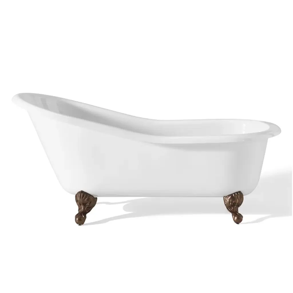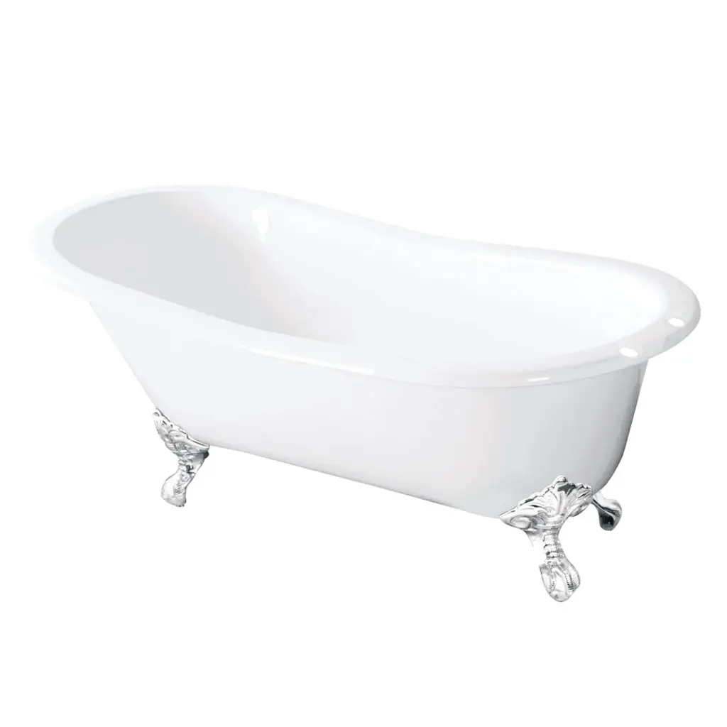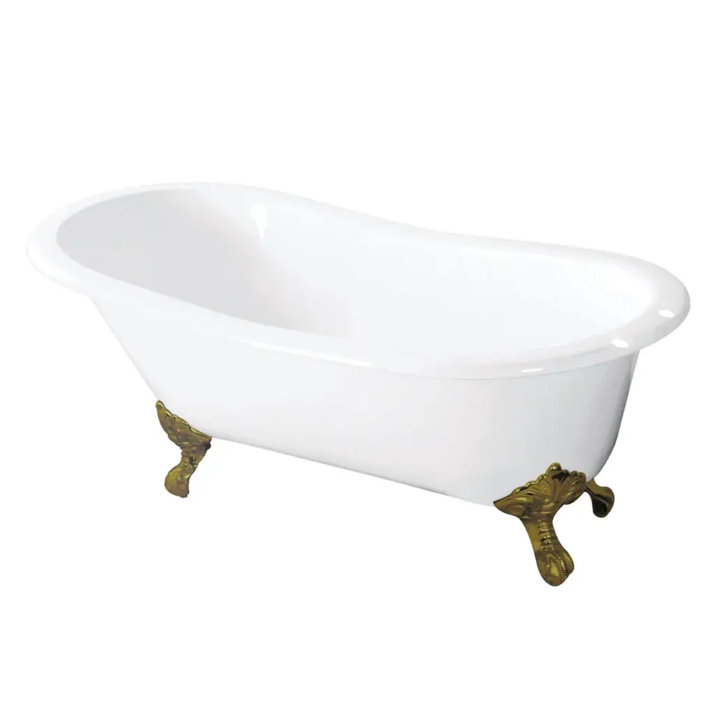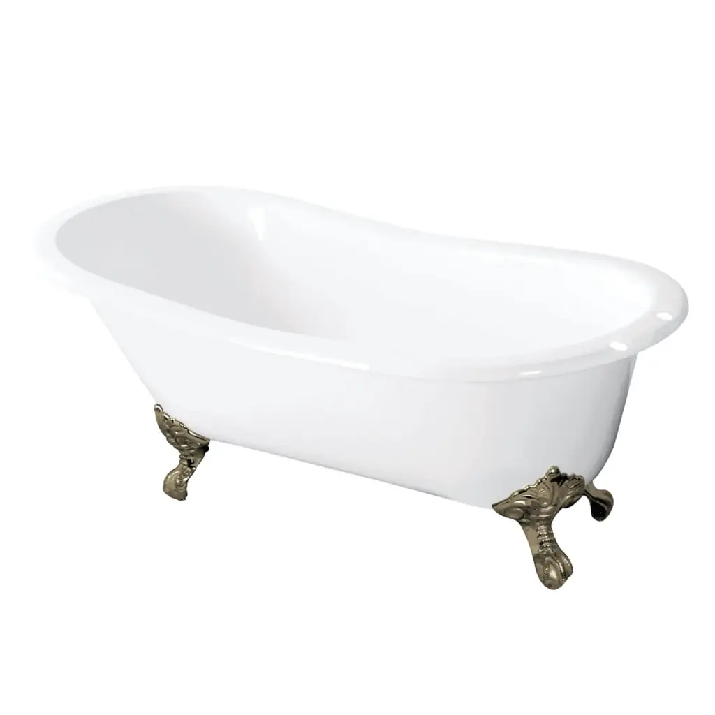 Surround yourself with the perfumed aroma of your favorite candle, grab your favorite piece of literature, and soak all of the stresses of the day away with the all-encompassing embrace of one of Kingston Brass' finest products, the clawfoot tub. Since the late 19th century, the clawfoot tub has stood prominent among bathroom fixtures for its outstanding grandeur. The Aqua Eden 54-inch cast iron slipper clawfoot tub with 7-inch faucet drillings will wholly beautify your home for years to come thanks to its durable and heavy cast iron construction. Elegantly crafted clawfoot tub feet are included to further elevate your home's traditional eminence.Kingston Brass VCT7D5431B Features:Tub Specifications: