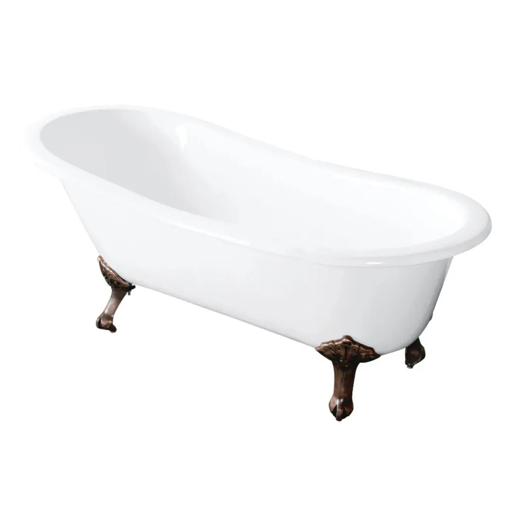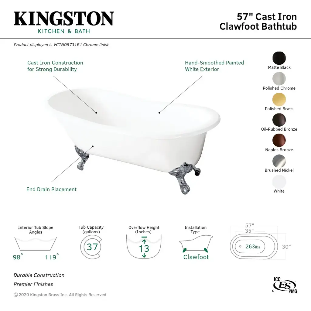 Kingston Brass Tazatina 57" Clawfoot Cast Iron Soaking Tub With - White / Oil Rubbed Bronze