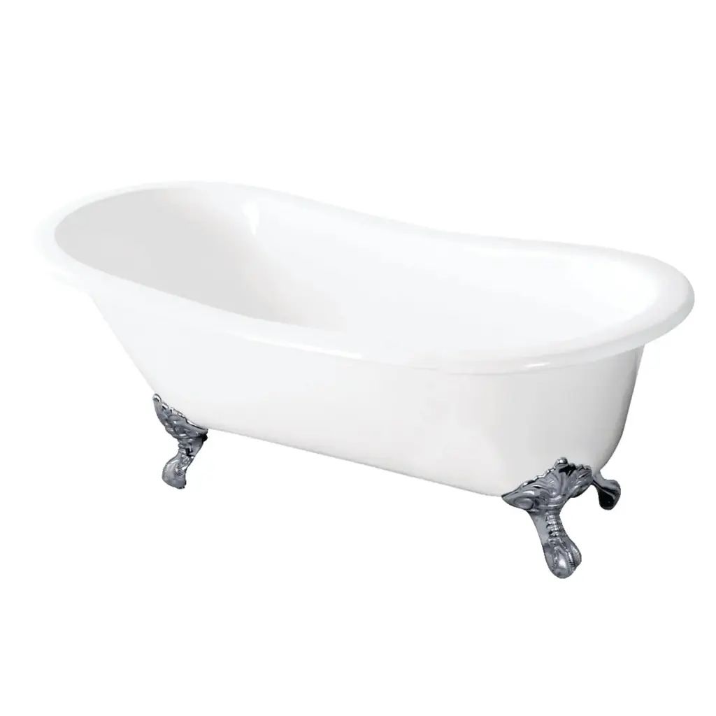 Surround yourself with the perfumed aroma of your favorite candle, grab your favorite piece of literature, and soak all of the stresses of the day away with the all-encompassing embrace of one of Kingston Brass' finest products, the clawfoot tub. Since the late 19th century, the clawfoot tub has stood prominent among bathroom fixtures for its outstanding grandeur. The Aqua Eden 57-inch cast iron slipper clawfoot tub without faucet drillings will wholly beautify your home for years to come thanks to its durable and heavy cast iron construction. Elegantly crafted clawfoot tub feet are included to further elevate your home's traditional eminence.Kingston Brass VCTND5731B Features:Tub Specifications: