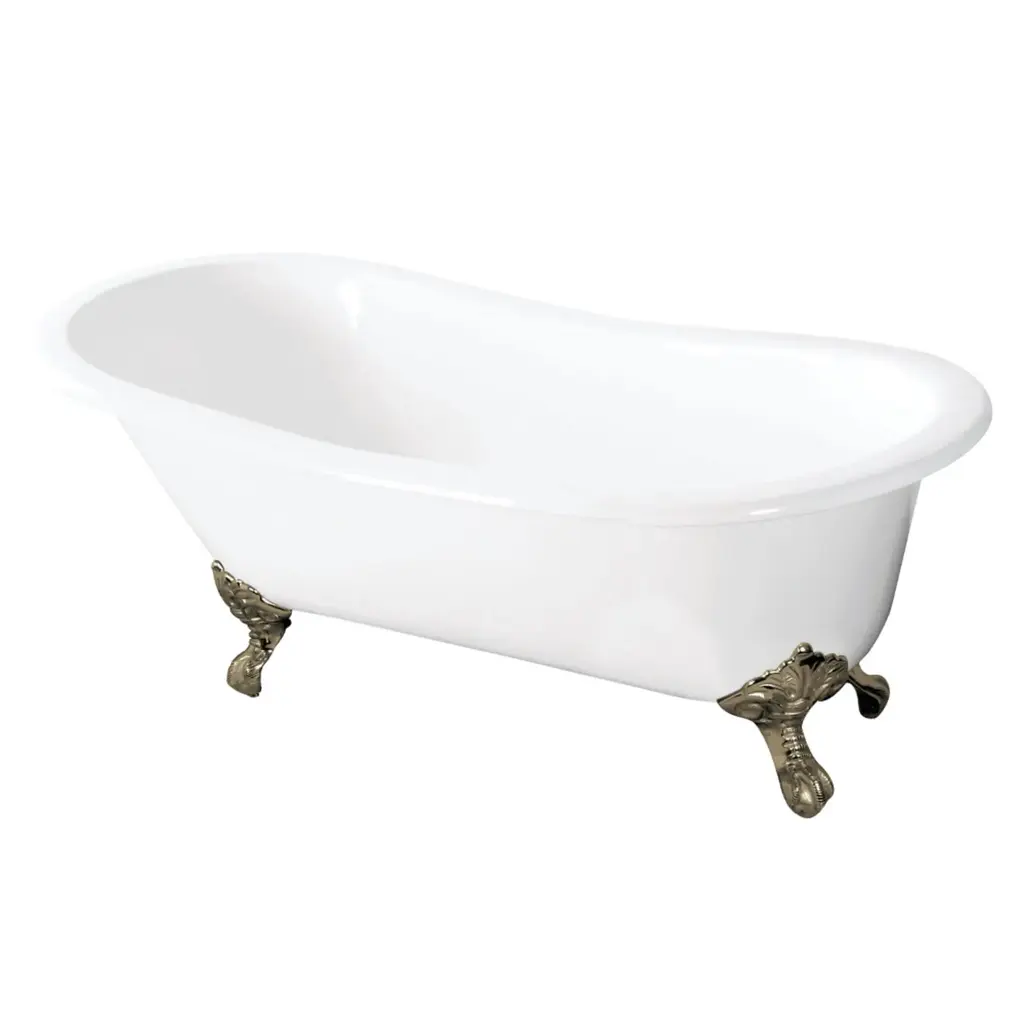 Surround yourself with the perfumed aroma of your favorite candle, grab your favorite piece of literature, and soak all of the stresses of the day away with the all-encompassing embrace of one of Kingston Brass' finest products, the clawfoot tub. Since the late 19th century, the clawfoot tub has stood prominent among bathroom fixtures for its outstanding grandeur. The Aqua Eden 57-inch cast iron slipper clawfoot tub without faucet drillings will wholly beautify your home for years to come thanks to its durable and heavy cast iron construction. Elegantly crafted clawfoot tub feet are included to further elevate your home's traditional eminence.Kingston Brass VCTND5731B Features:Tub Specifications: