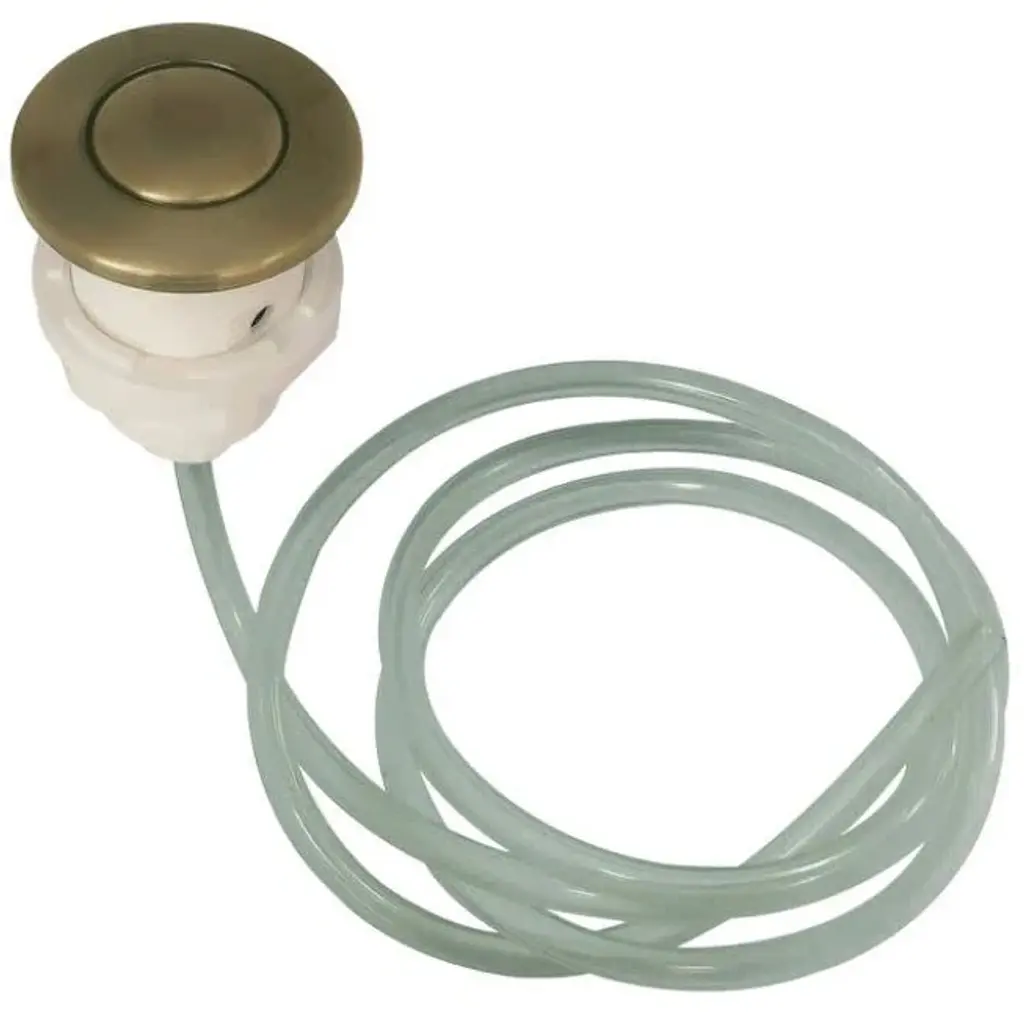 The disposal air switch button from Gourmetier is a convenient way in finishing work around the kitchen sink. The button, which can be mounted to the sink or the countertop, connects to a hose that plunges air activating the disposal. The button is available in a variety of finishes (Chrome, brass, bronze, nickel) to complement the finish of your faucet and/or surrounding decor.Kingston Brass KA31 Features:Kingston Brass KA31 Specifications: