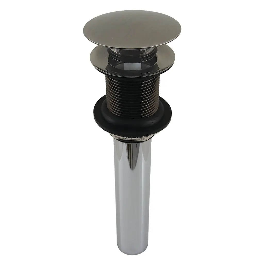 Push-up bathroom drains feature a spring mechanism to easily close and open the fixtures. Available in multiple finishes to match your faucet, the Kingston Brass Trimscape push pop-up drain without overflow will fit standard bathroom sink sizes.FeaturesFabricated from solid brass material for durability and reliability1-1/4" O.D. tailpieceButton size: (L)2-3/4" x (W)2-3/4" x (H) 9-7/16"Premium color finish resist tarnishing and corrosionFits standard 1-3/4" openingPush pop-up mechanismWithout overflow designEasy installation save you time and effortDesigned for long-lasting durabilityMounting hardware includedProp 65 disclaimerWARNING: This product can expose you to chemicals, including lead which is known to the State of California to cause cancer or birth defects or other reproductive harm, for more information, go to www.p65warnings.ca.gov