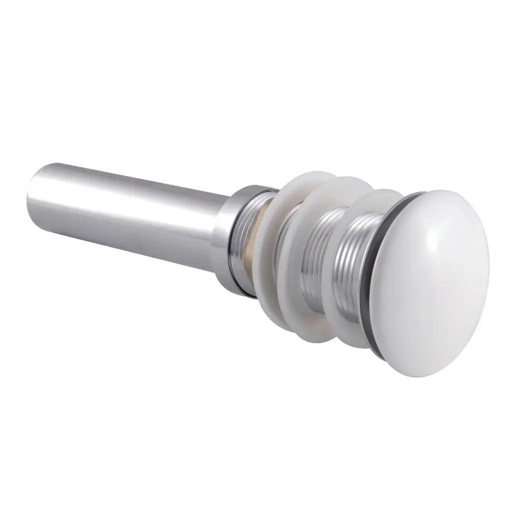 Push-up bathroom drains feature a spring mechanism to easily close and open the fixtures. Available in multiple finishes to match your faucet, the Kingston Brass Trimscape push pop-up drain without overflow will fit standard bathroom sink sizes.FeaturesFabricated from solid brass material for durability and reliability1-1/4" O.D. tailpieceButton size: (L)2-3/4" x (W)2-3/4" x (H) 9-7/16"Premium color finish resist tarnishing and corrosionFits standard 1-3/4" openingPush pop-up mechanismWithout overflow designEasy installation save you time and effortDesigned for long-lasting durabilityMounting hardware includedProp 65 disclaimerWARNING: This product can expose you to chemicals, including lead which is known to the State of California to cause cancer or birth defects or other reproductive harm, for more information, go to www.p65warnings.ca.gov