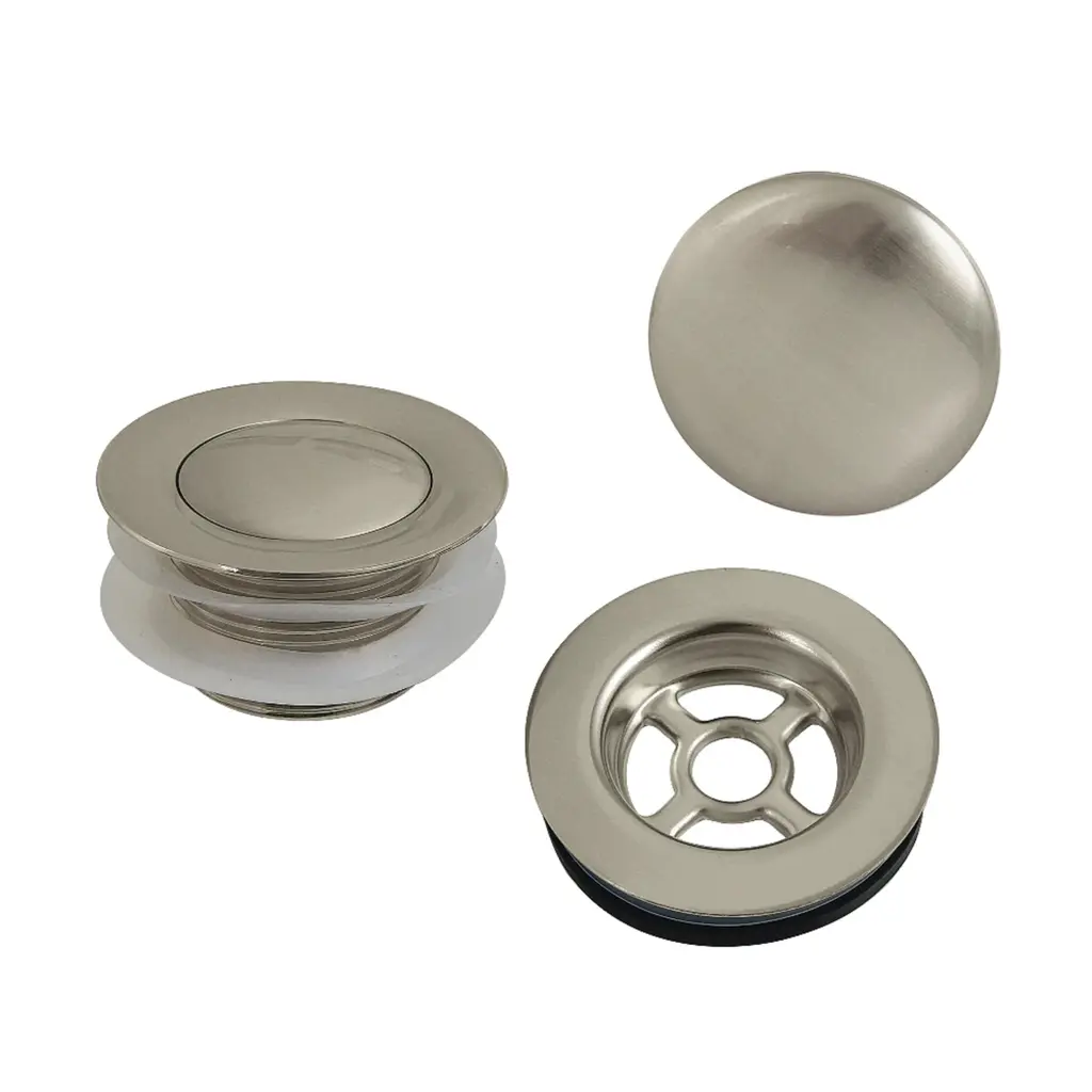Easily replace your worn or unsightly bathtub drain with this easy to install toe tap drain kit. With all the necessary parts included and easy to follow instructions, making your bathtub look like new has never been easier. This drain is effortlessly operated with just a push of the toe to open and close as desired. Finished in antique brass, this high quality tub drain kit is built for durable and reliable long-term use. This tub drain kit fits 1-1/2 - 11-1/2 NPSM (1-7/8 in. O.D.) coarse thread.FeaturesFabricated from high quality brassToe touch tub drain1-1/2" thread lengthFits standard 1-1/2" NPSM threaded drains2-11/16" drain diameterIncludes round overflow trimProp 65 disclaimerWARNING: This product can expose you to chemicals, including lead which is known to the State of California to cause cancer or birth defects or other reproductive harm, for more information, go to www.p65warnings.ca.gov
