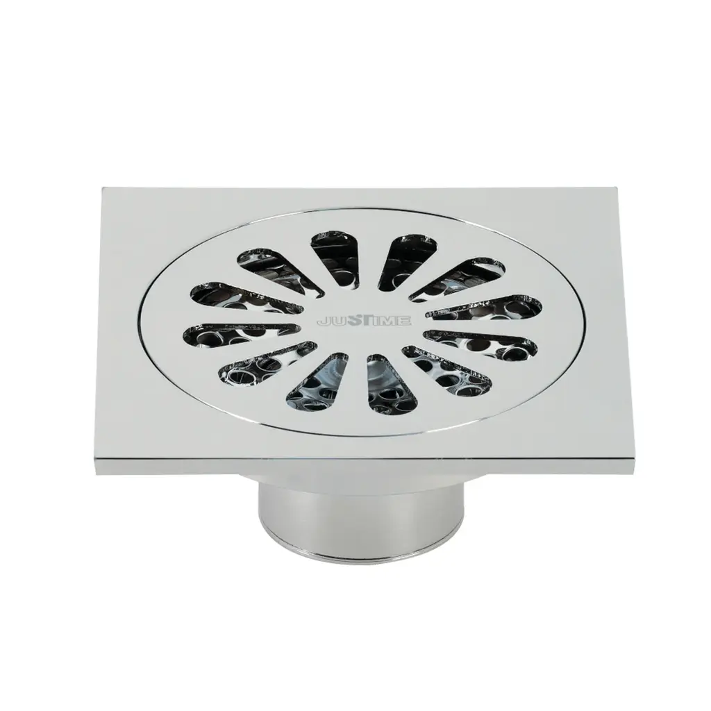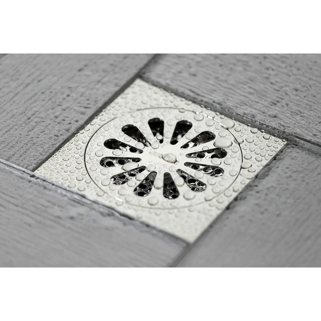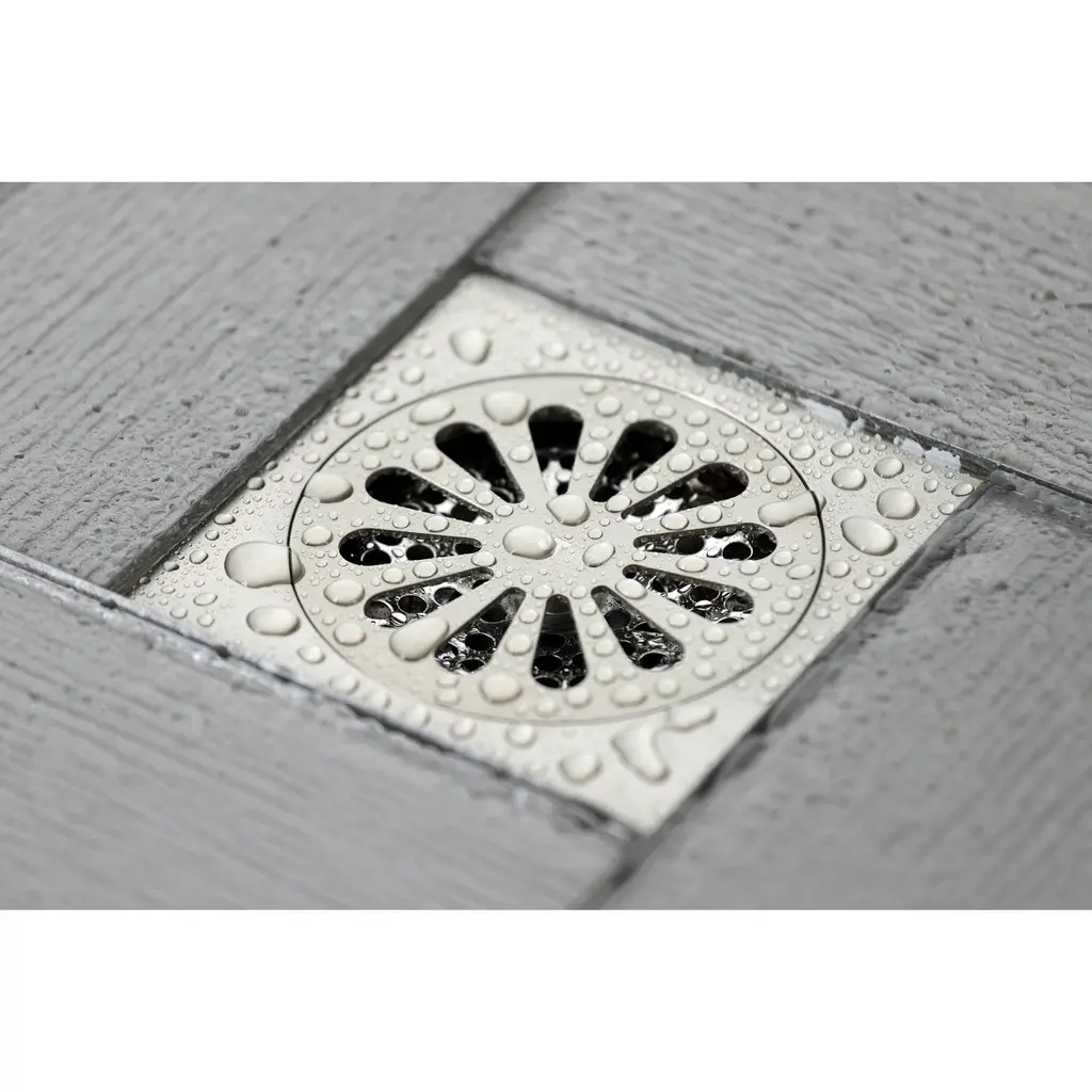 The Watercourse collection features an array of shower drains in multiple finishes. From simple, non-obtrusive grid-cut floor drains to ornate embossed floral patterns the Watercourse collection offers a range of selections. Watercourse drains install a variety of ways and fit a range of both square and circular drain openings. Please see each drain for its detailed specifications and compatibility. The Sunburst drain flange in the Watercourse collection fits a 4" x 4" square and features an array of elongated tear-drop cutouts in a sunburst pattern on its circular hair catcher to prevent foreign objects entering your drain. The design comes in Chrome, Polished Brass, Antique Brass, Oil Rubbed Bronze, Polished Nickel, Brushed Brass, Brushed Nickel and Matte Black to match nearly any fixture and any design.FeaturesSolid brass constructionSquare shower drainOverall dimension: (L)3-15/16" x (W)3-15/16" x (H)1-5/8"Floor installationIncludes cover, dome grid, drain body, and drain core