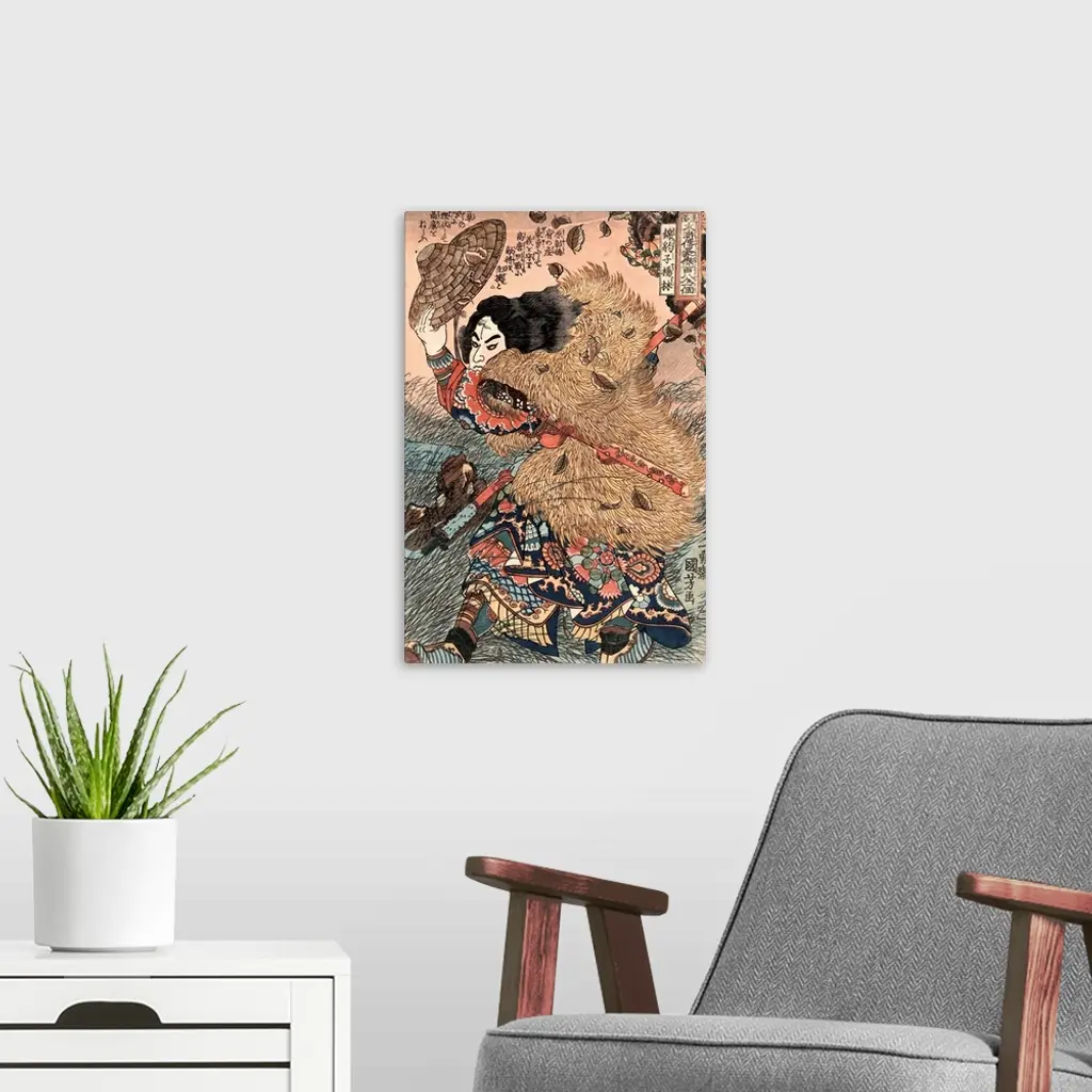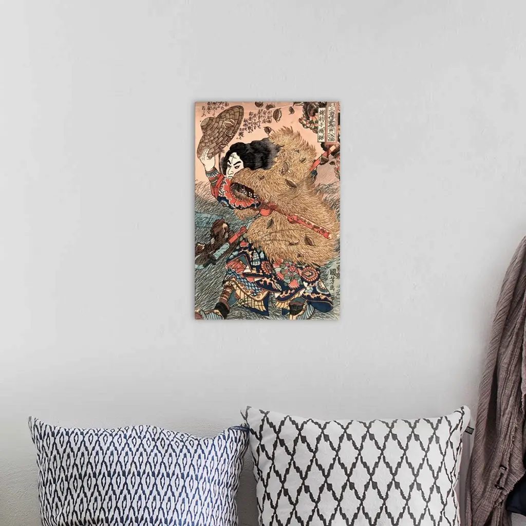 Utagawa Kuniyoshi (Japanese, 1797?1861), Kinhyoshi yorin (Yang Lin), hero of the Suikoden (Water Margin), 1827-30. Ukiyo-e woodblock print, 36 x 24.7 cm. Vertical Oban Nishikie format, from the series Tsuzoku suikoden goketsu hyakuhachinin no hitori (The popular edition of Suikoden: one of 108 brave warriors).