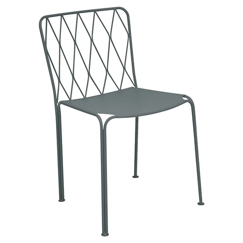 A modern take on classic English garden chairs. The Fermob Kintbury Chair Set of 2 was designed by Terence Conran with clean, yet romantic curves and harlequin patterned wirework. The elegance of the chair is matched by its durability; it's made with a steel rod frame and sheet steel seat in one of over 20 available weather-proof powder coated finishes.