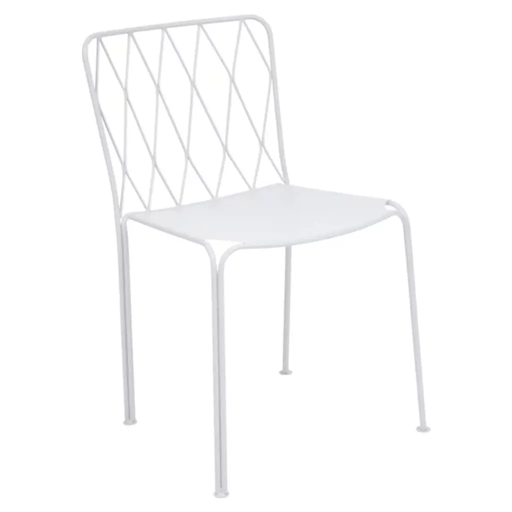 A modern take on classic English garden chairs. The Fermob Kintbury Chair Set of 2 was designed by Terence Conran with clean, yet romantic curves and harlequin patterned wirework. The elegance of the chair is matched by its durability; it's made with a steel rod frame and sheet steel seat in one of over 20 available weather-proof powder coated finishes.