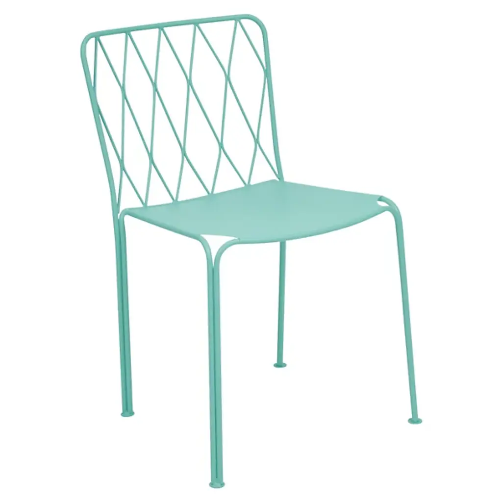 A modern take on classic English garden chairs. The Fermob Kintbury Chair Set of 2 was designed by Terence Conran with clean, yet romantic curves and harlequin patterned wirework. The elegance of the chair is matched by its durability; it's made with a steel rod frame and sheet steel seat in one of over 20 available weather-proof powder coated finishes.