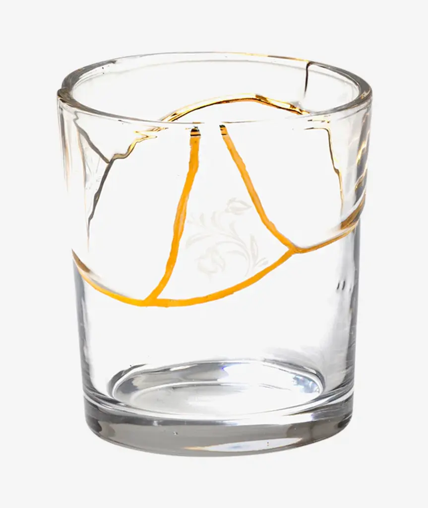GlassMaterial: Glass and GoldDishawasher proofKintsugi Japanese art assumes contemporary shapes. The delicate porcelaine is glorified and enriched with gold fragments for a tableweare collection made of charming and unexpected compositions.