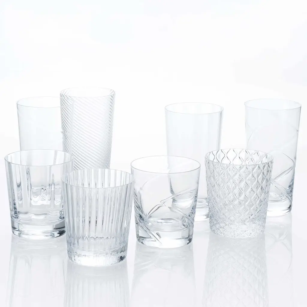 Size(inch) : W3.2 x H3.6Volume (oz) : 10.1(mm) : W82 x H92Volume (ml) : 300Our Kirameki glasses have been very popular since we launched the collection in eight different designs and in two different shapes - smaller versions of old fashioned glass and tumbler - a few years ago. This season, we have new additions to this collection. The old fashioned glass is now available in a bigger size with 4 different patterns while the tumbler is available in 12 different patterns.KIRAMEKI glass evokes all five senses: by seeing the light going through the glass, by hearing the sound of ices clinking the glass, by feeling the weight and touching the pattern, and of course, by smelling and tasting the beverage in it.