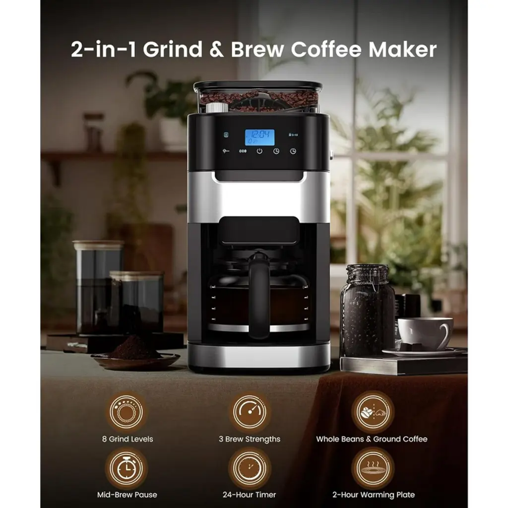Kismile 10-cup Drip Coffee Maker With Grinder, Grind And Brew Coffee Maker, 12-hour Timer, 3 Brew Strength Options, 1.5l Water Tank