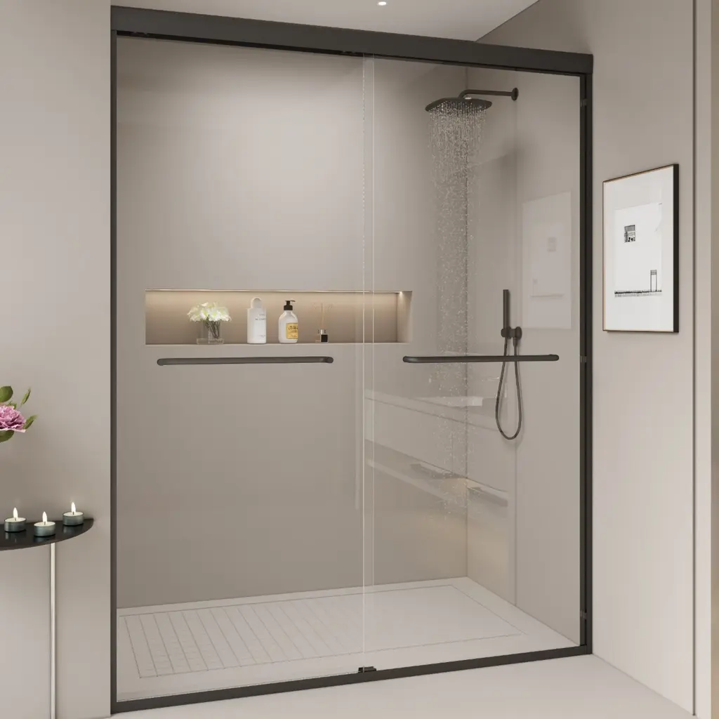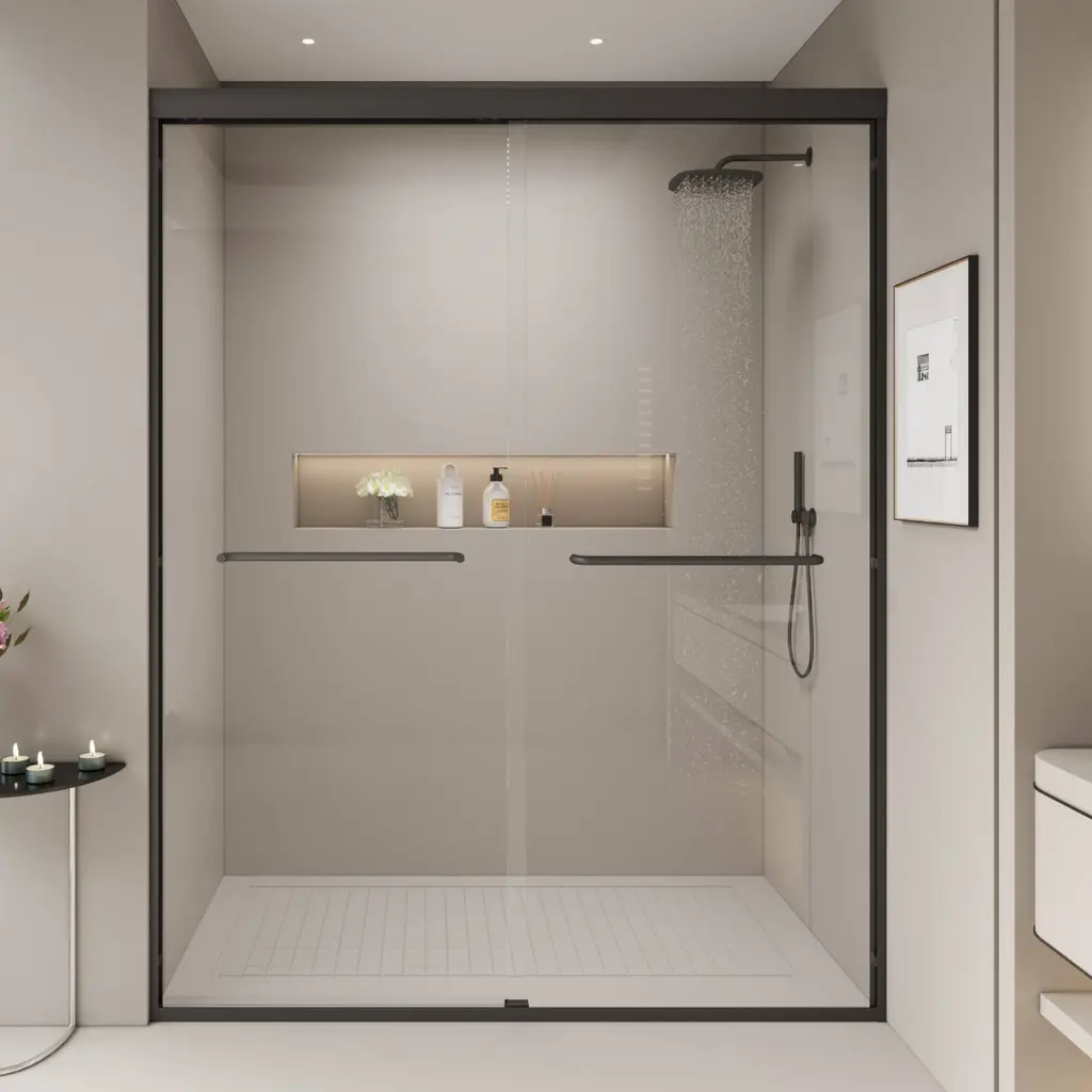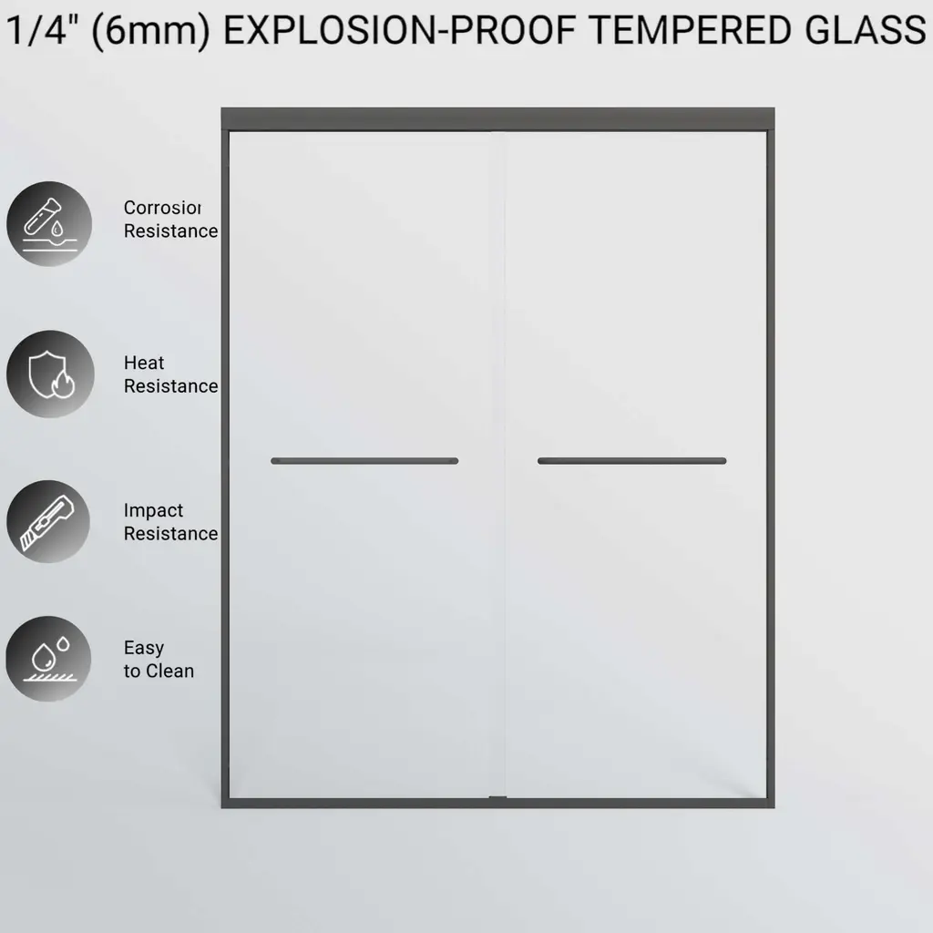 Kisrais 44-48 In. W X 72 In. H Semi-Frameless Double Sliding Shower Door For Walk-In Shower - Matte Black