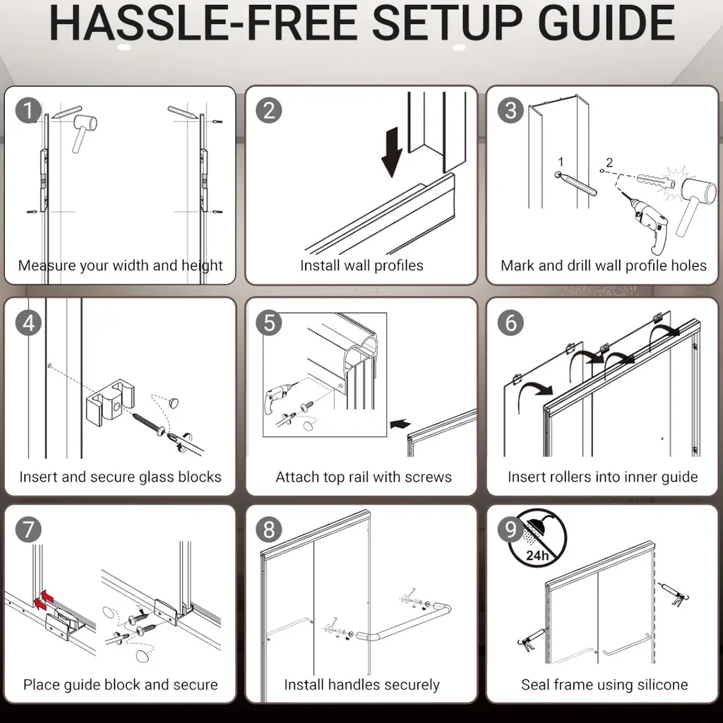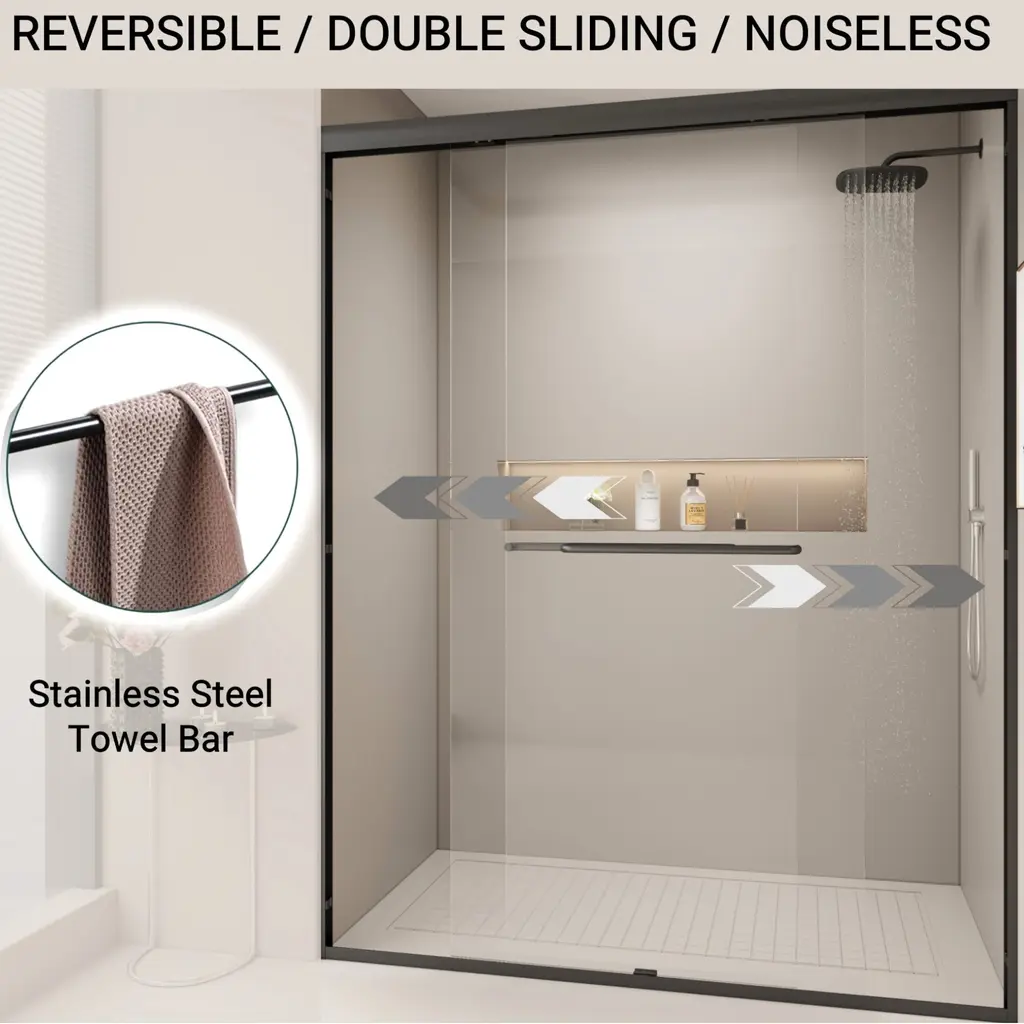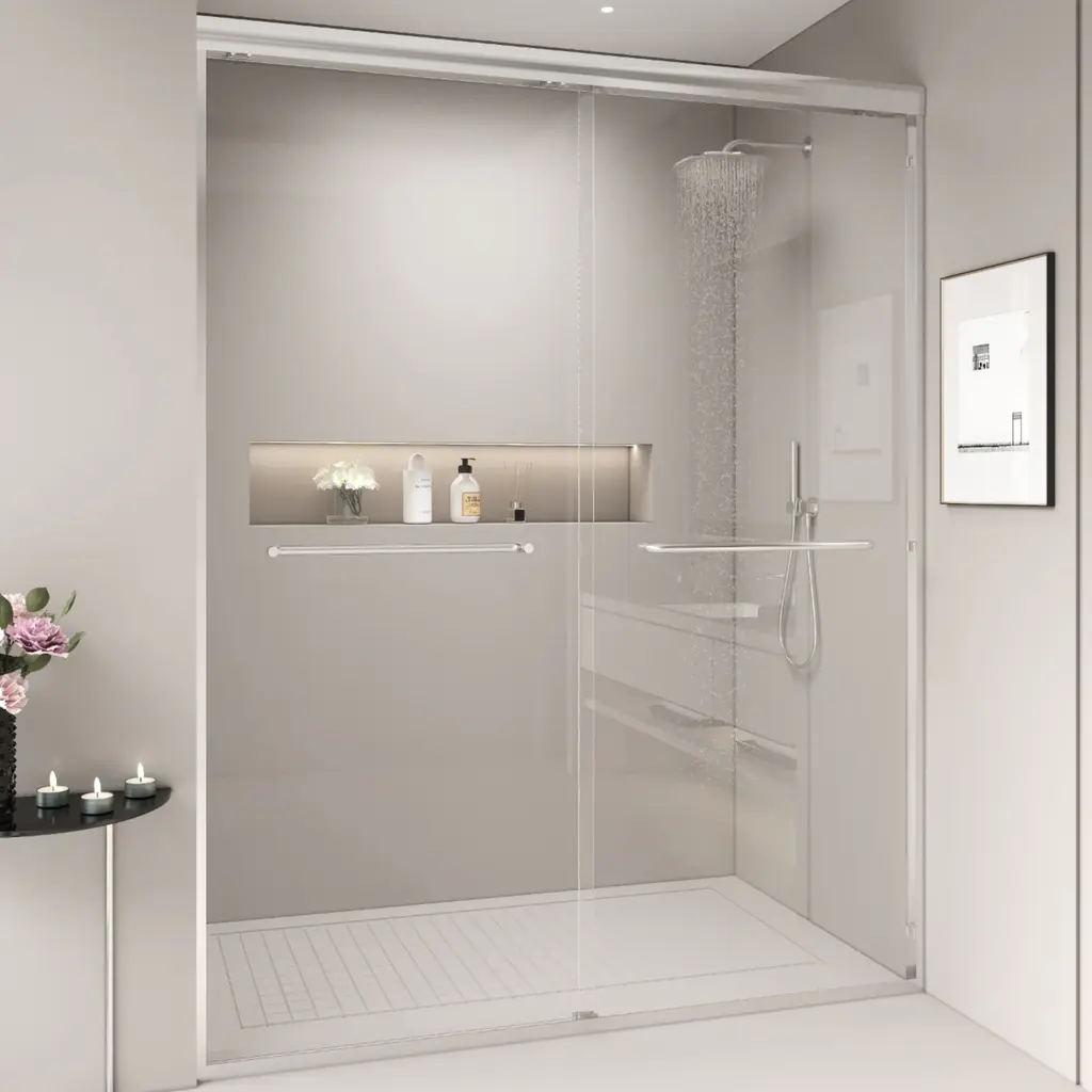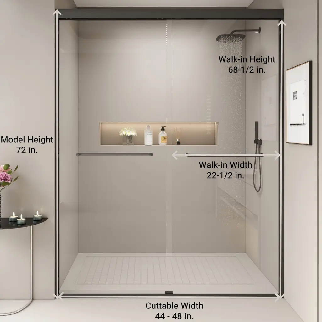 Elevate your bathroom's style and functionality with this 44"-48" W x 72" H Double Sliding Semi-Frameless Shower Door. Featuring durable tempered glass and a sleek chrome finish, this shower door is designed for elegance, safety, and convenience. Perfectly adjustable for a custom fit, it combines modern aesthetics with robust construction, making it an ideal choice for your walk-in shower. Features