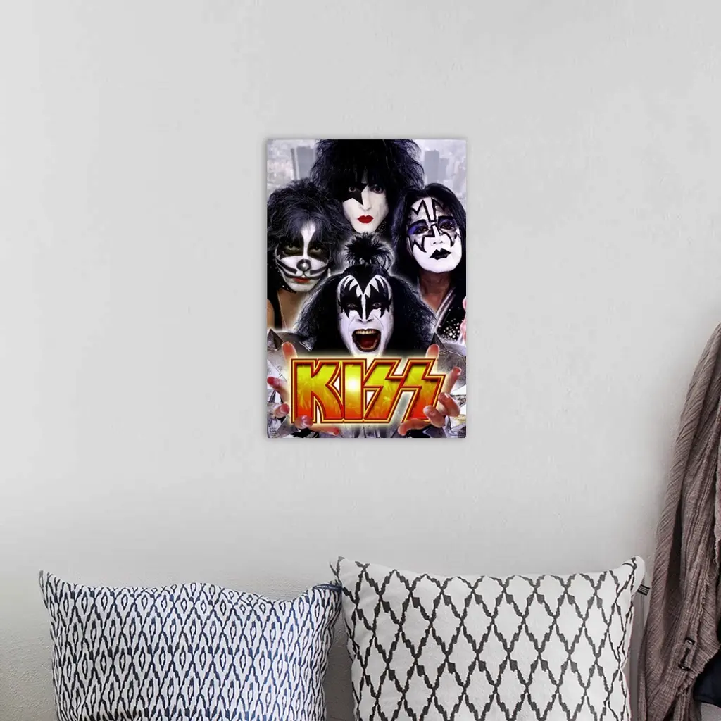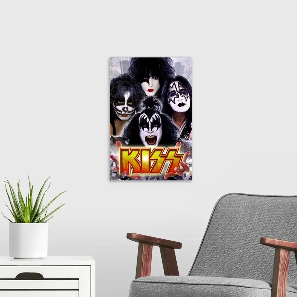 A vertical poster of the flamboyant rock band photographed from the shoulders up.