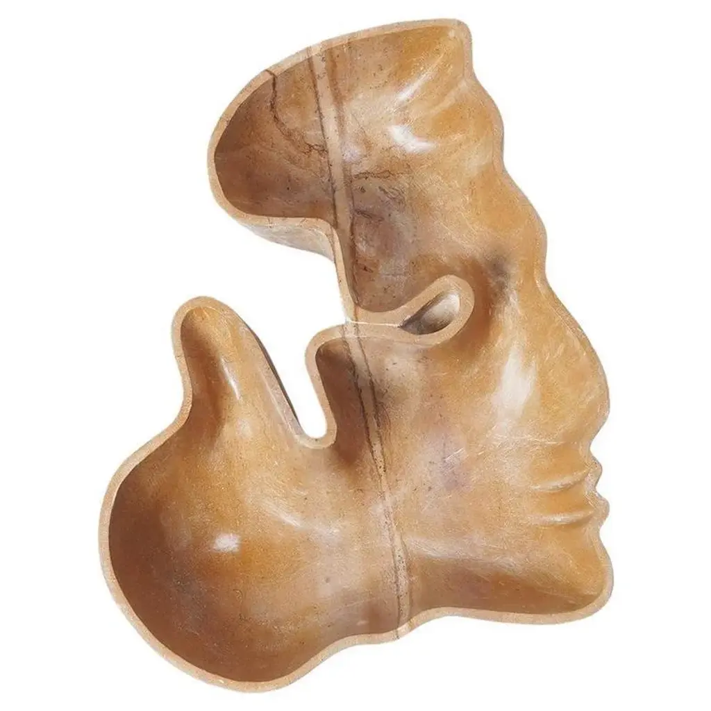 Kiss Man Ocher Marble Recipient by Jean Pascal Levy-Trumet Limited Edition. Dimensions: D 39 x W 32 x H 10 cm. Materials: Ocher marble.