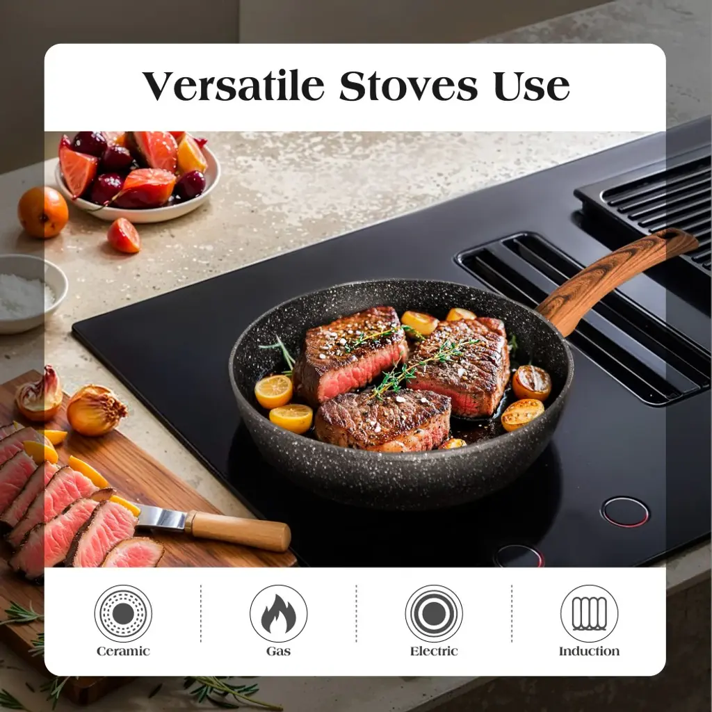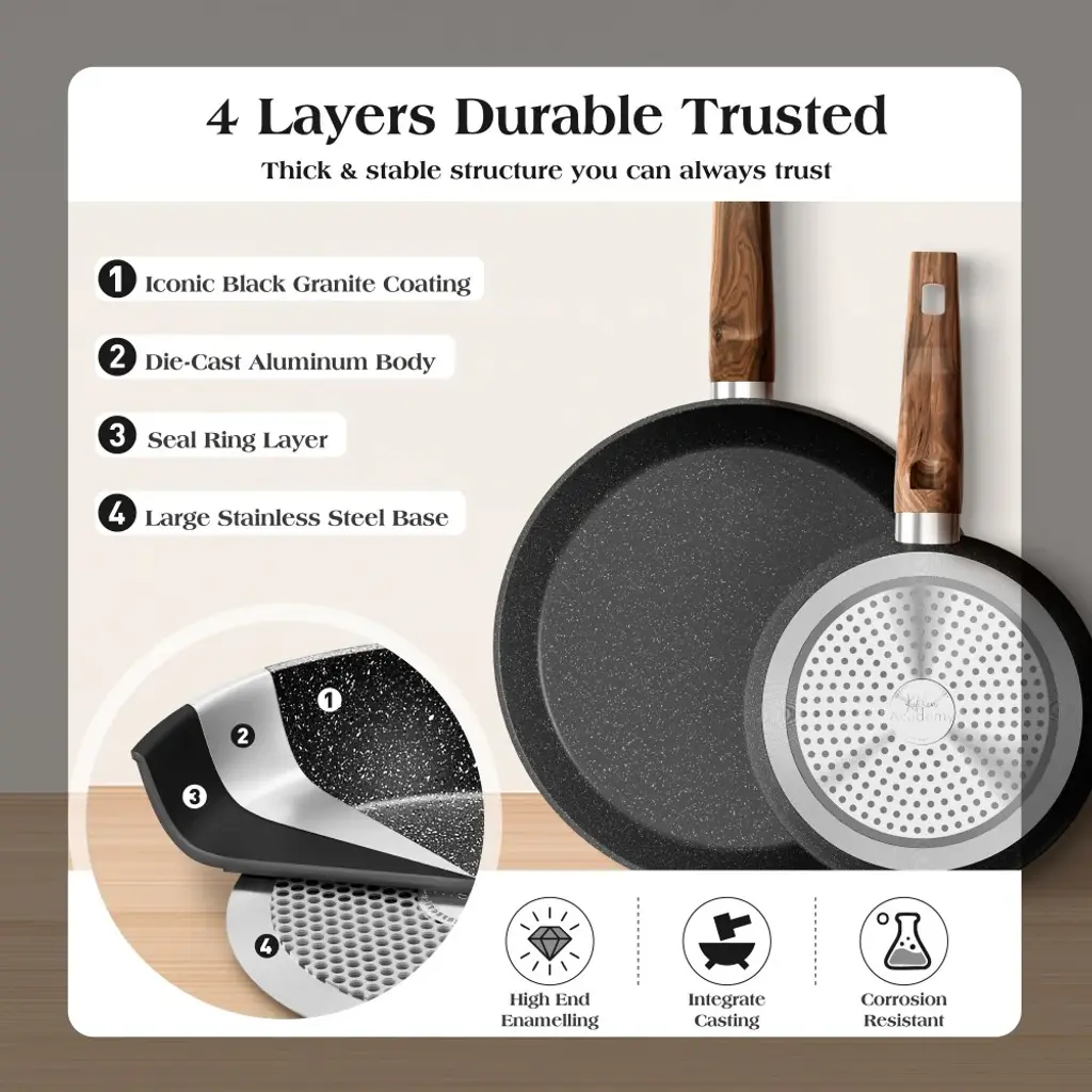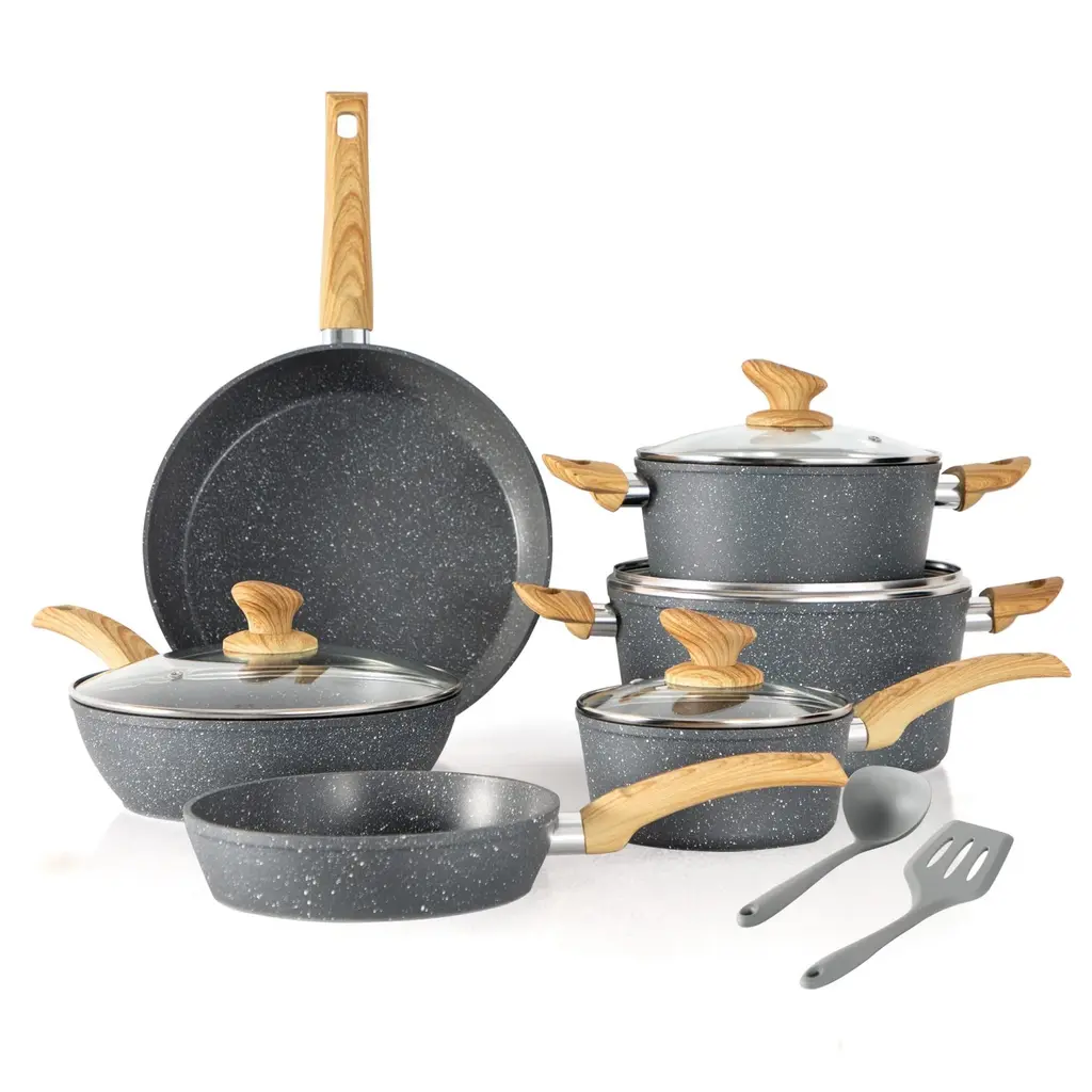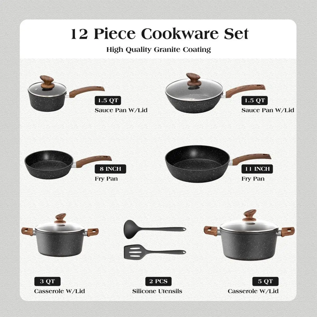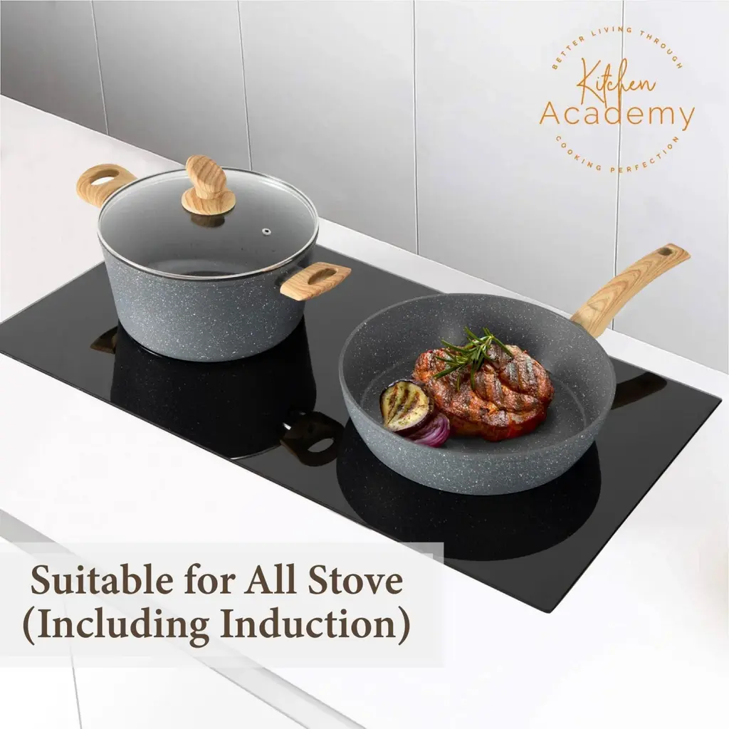 Kitchen Academy Stylish Granite-Coating Nonstick Induction 12 Pieces Cookware Set