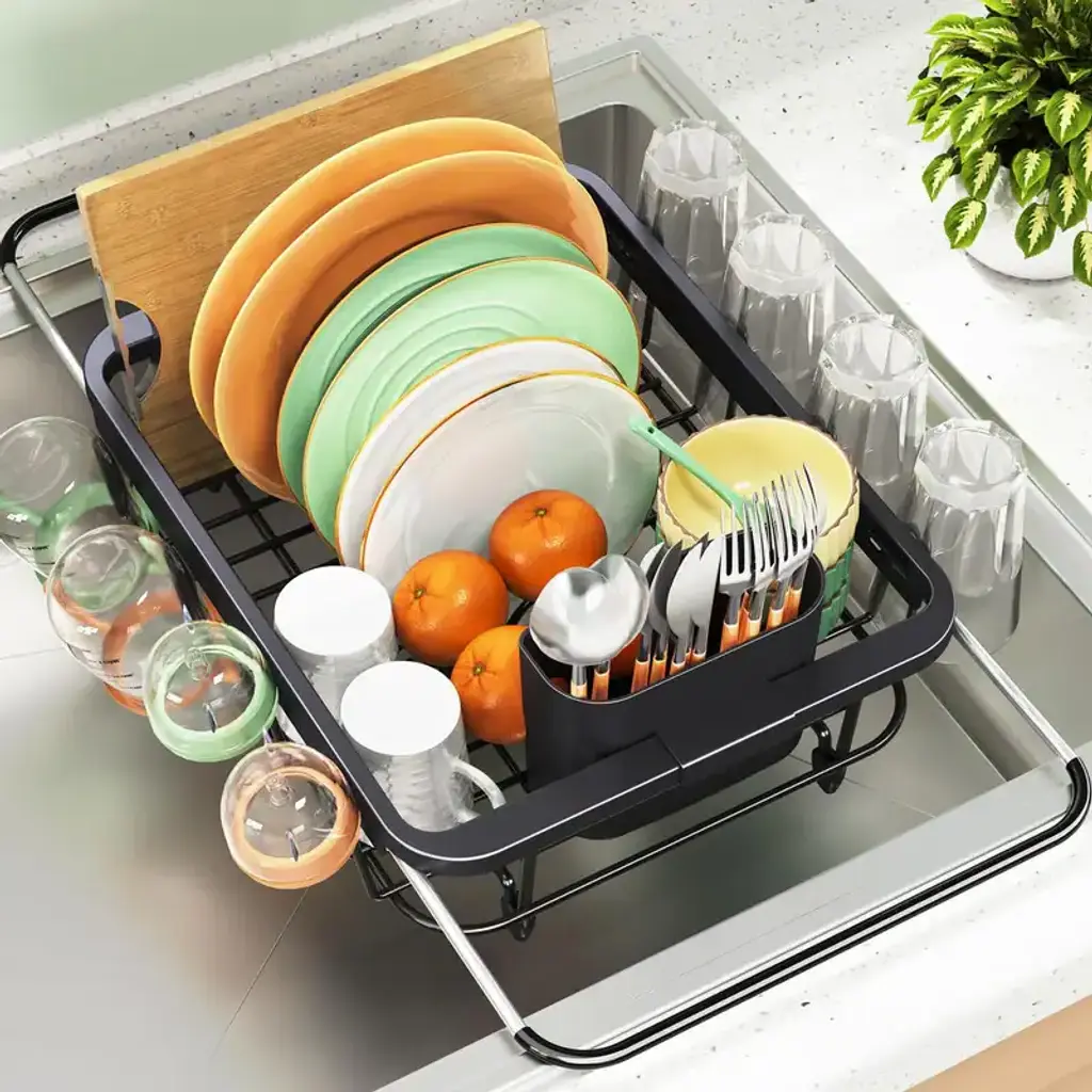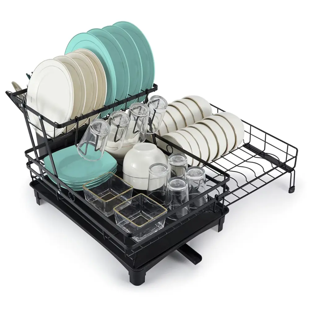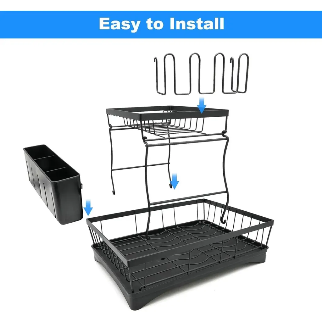 Kitchen Counter Large Utensil Drying Rack, Detachable Large Capacity Utensil Drying Rack With Utensil Rack, 2-Story Utensil Dryi