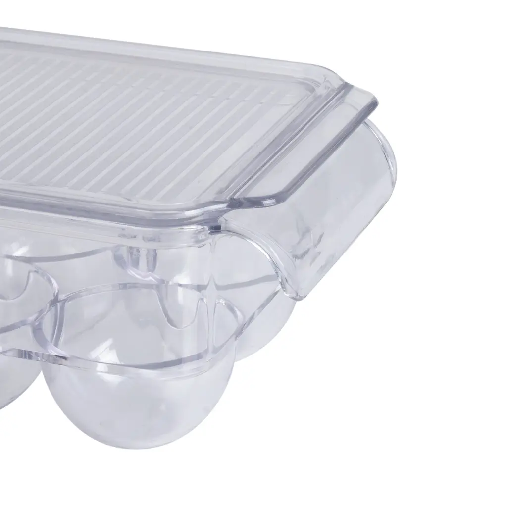 Double the space in your fridge by using the Kitchen Details egg crate. Made durable and is safe in extreme temperatures, the organizer can be used in your fridge or freezer. Can easily stack them to double your space and built with a built in handle to pull the organizer in or out to access your items.