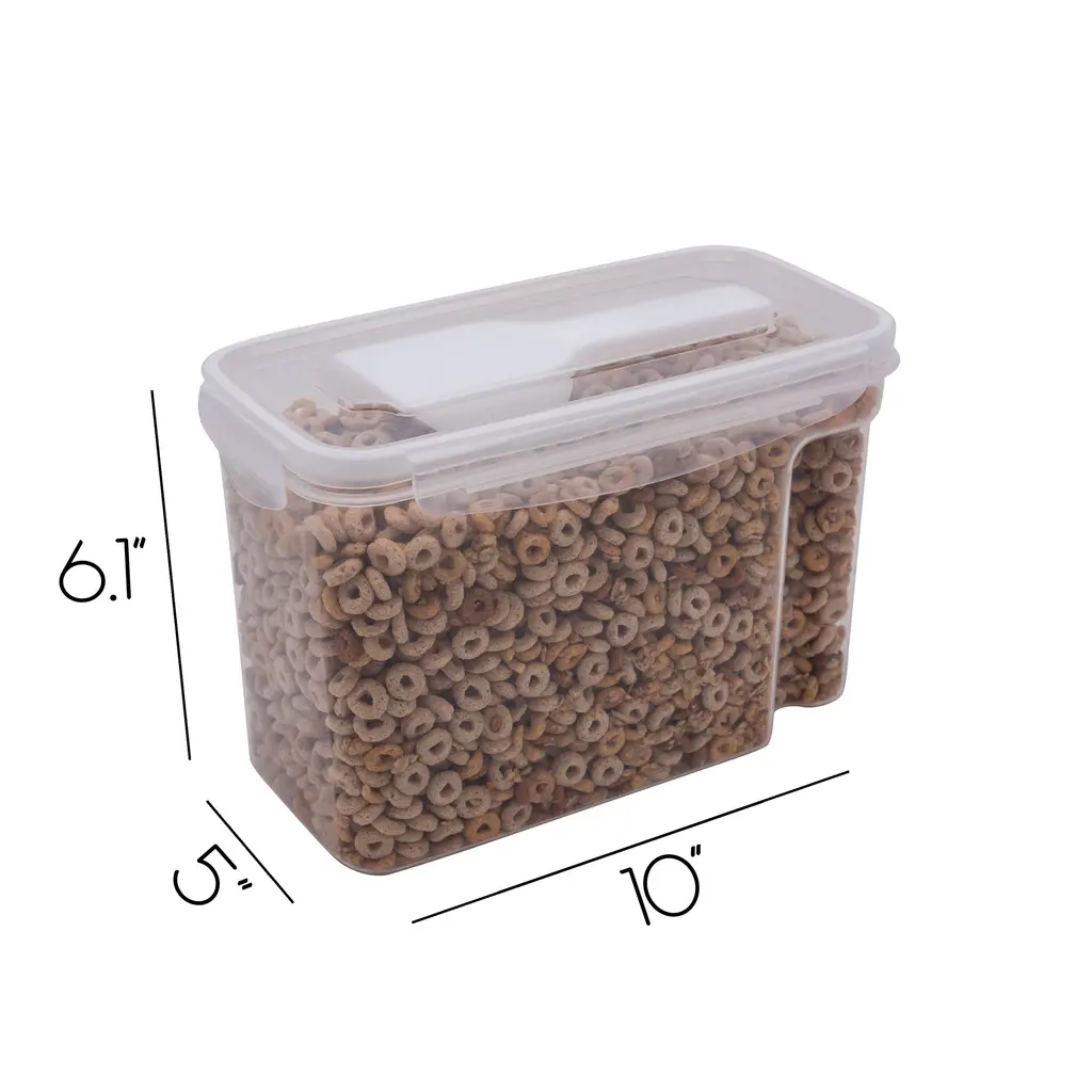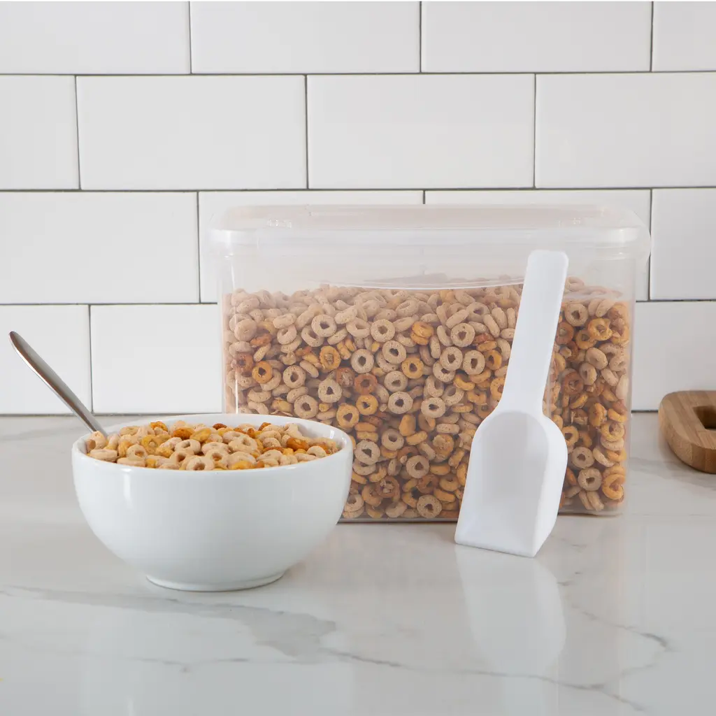 Keep your cereal fresh with the Kitchen Details Airtight Cereal Container. Designed with snap lock lid that prevents air from getting in and causing staleness. A scooper included to make it easy to scoop out cereal. The container is freezer and dishwasher safe, made from BPA free material.