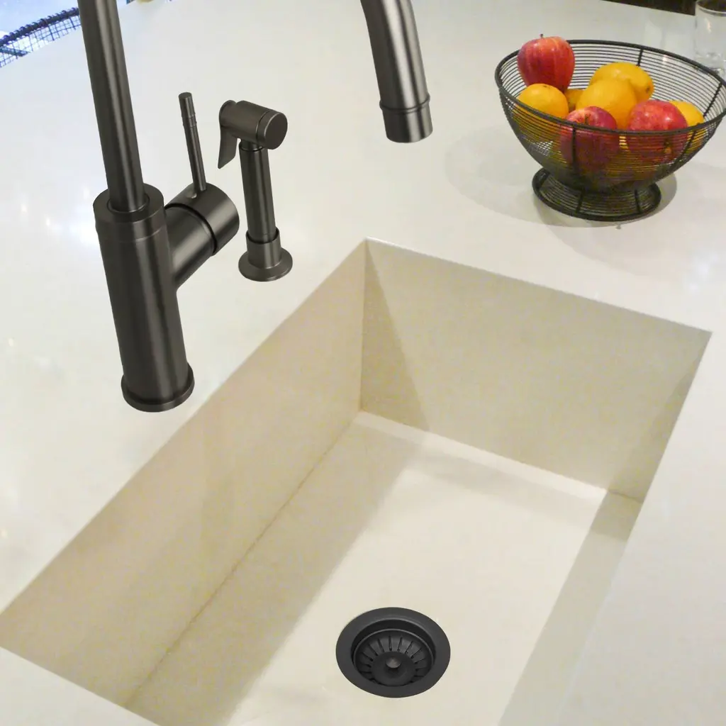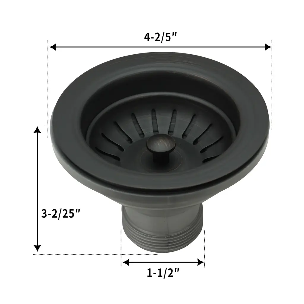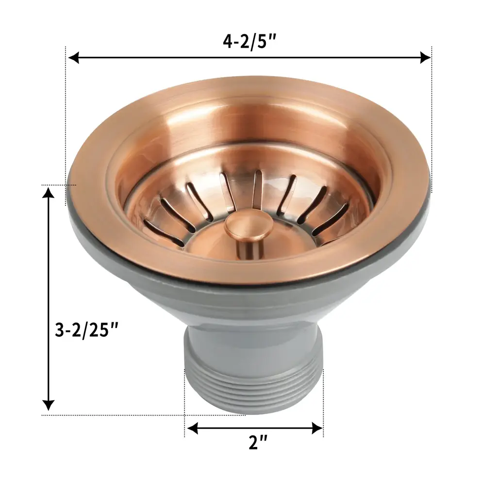 Kitchen Sink Stopper Replacement for 3-1/2 Inch Standard Strainer Drain(1.5" connector) *Plastic & Copper construction is designed for durability *All standard kitchen sinks in the U.S. have a 3½ inch drain hole. This 3½" drain assembly is a perfect fit for any standard kitchen sink drain *Hand finished looks beautiful with any copper kitchen sinks *Removable post styled basket makes cleaning easy *Lifetime Warranty