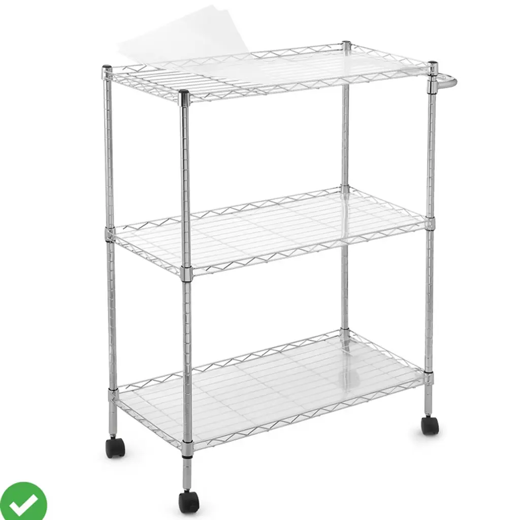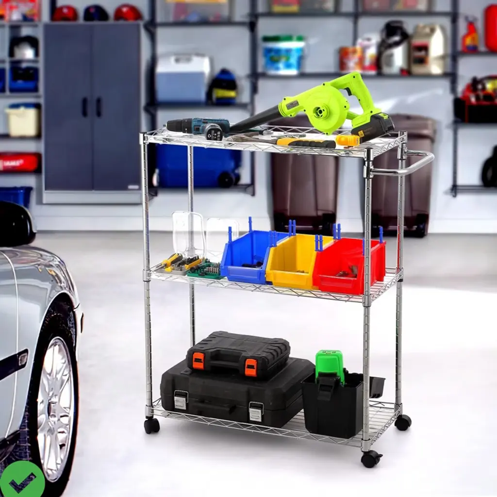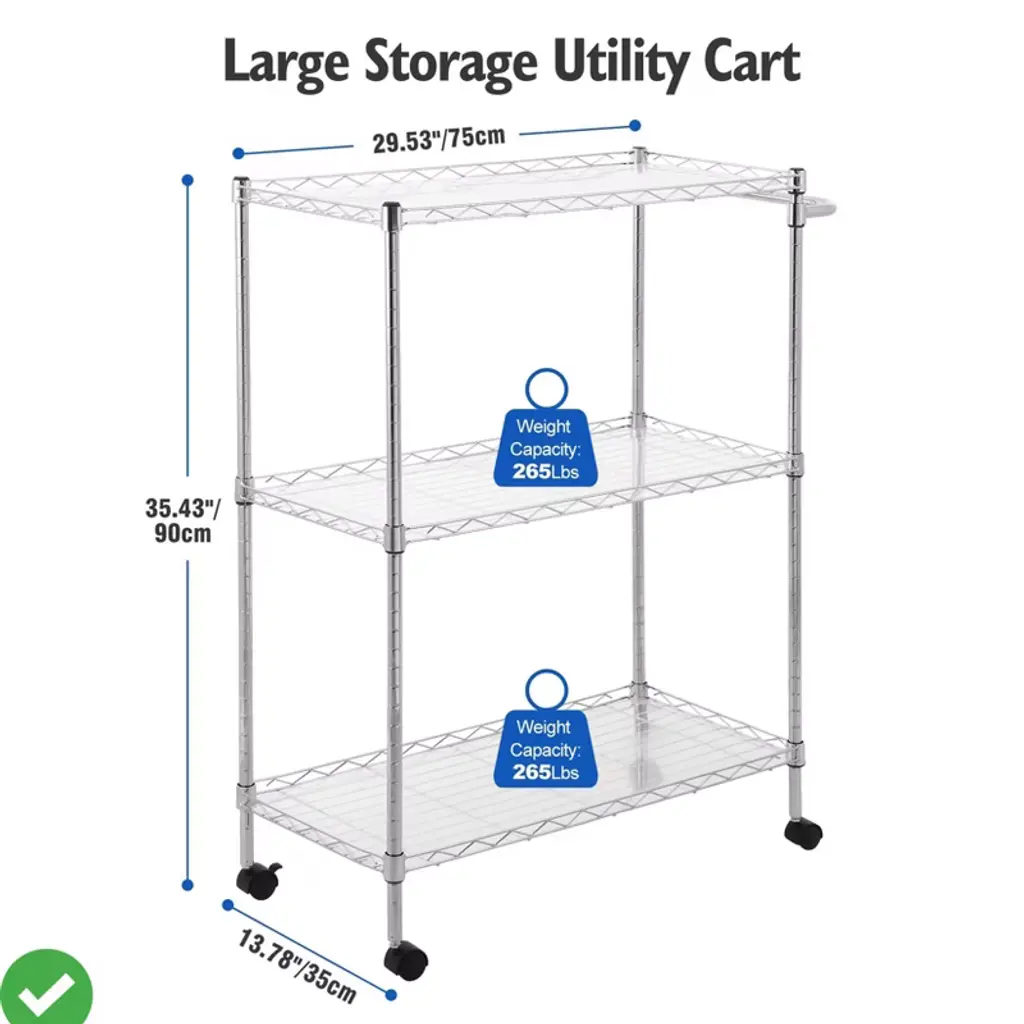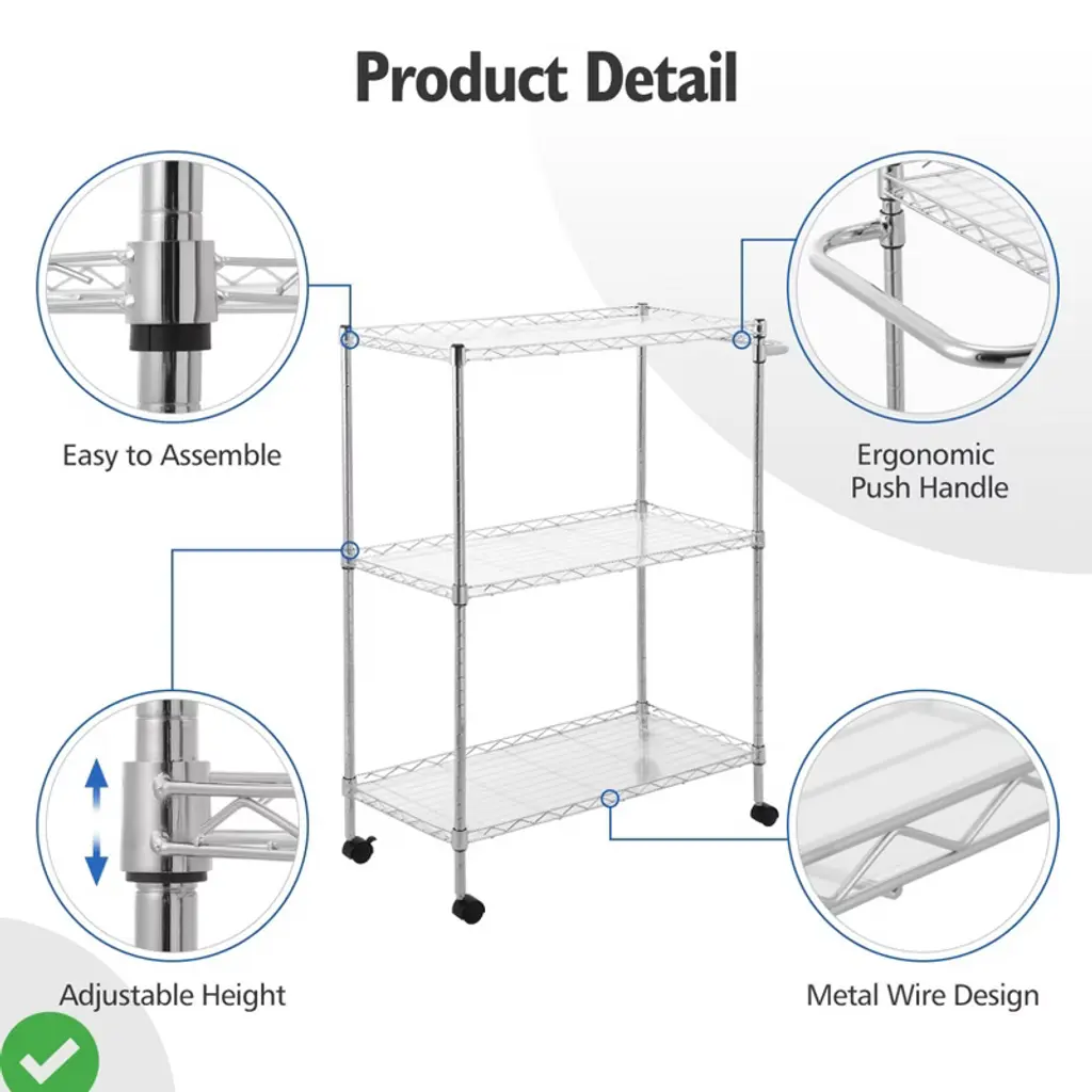 Kitchen Utility Rolling Cart 3 Tier Metal Storage Trolley W/wheels Wire Rolling Cart Serving Storage Cart