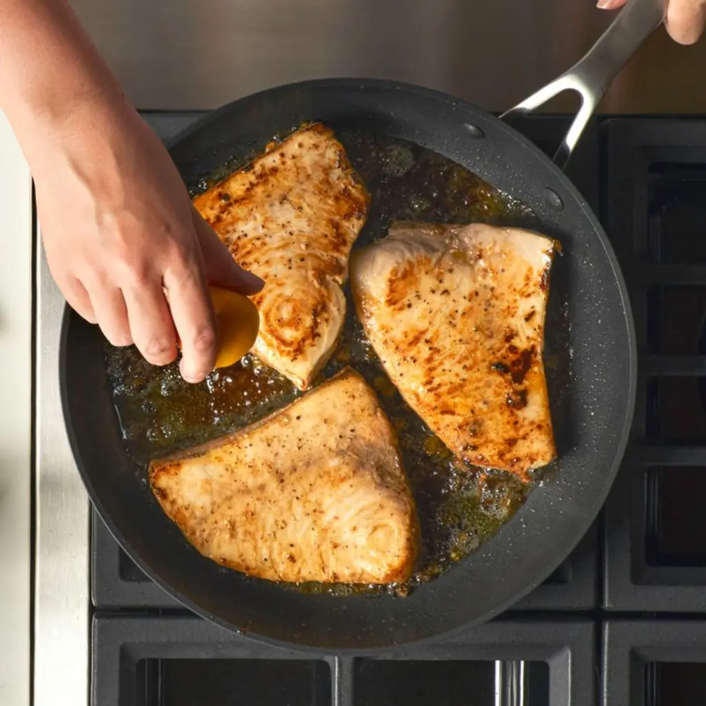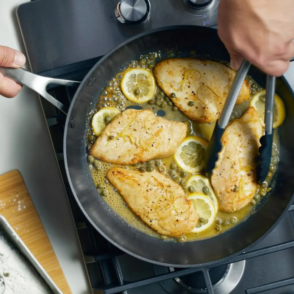 Three layers of non-stick coating on this hard-anodized aluminum frying pan stand up to everyday use to ensure food releases easily. Cleanup is a breeze, with the enhanced non-stick finish even on the handle rivets. Use the fry pan to cook up potatoes, pork chops and asparagus, and add the glass lid to fry and steam potstickers or create the perfect sunny side-up eggs. Safe for use in the oven and dishwasher, the hard-anodized fry pan with lid offers durability and versatility for daily cooking.KitchenAid has been creating high-quality kitchenware for over a century.