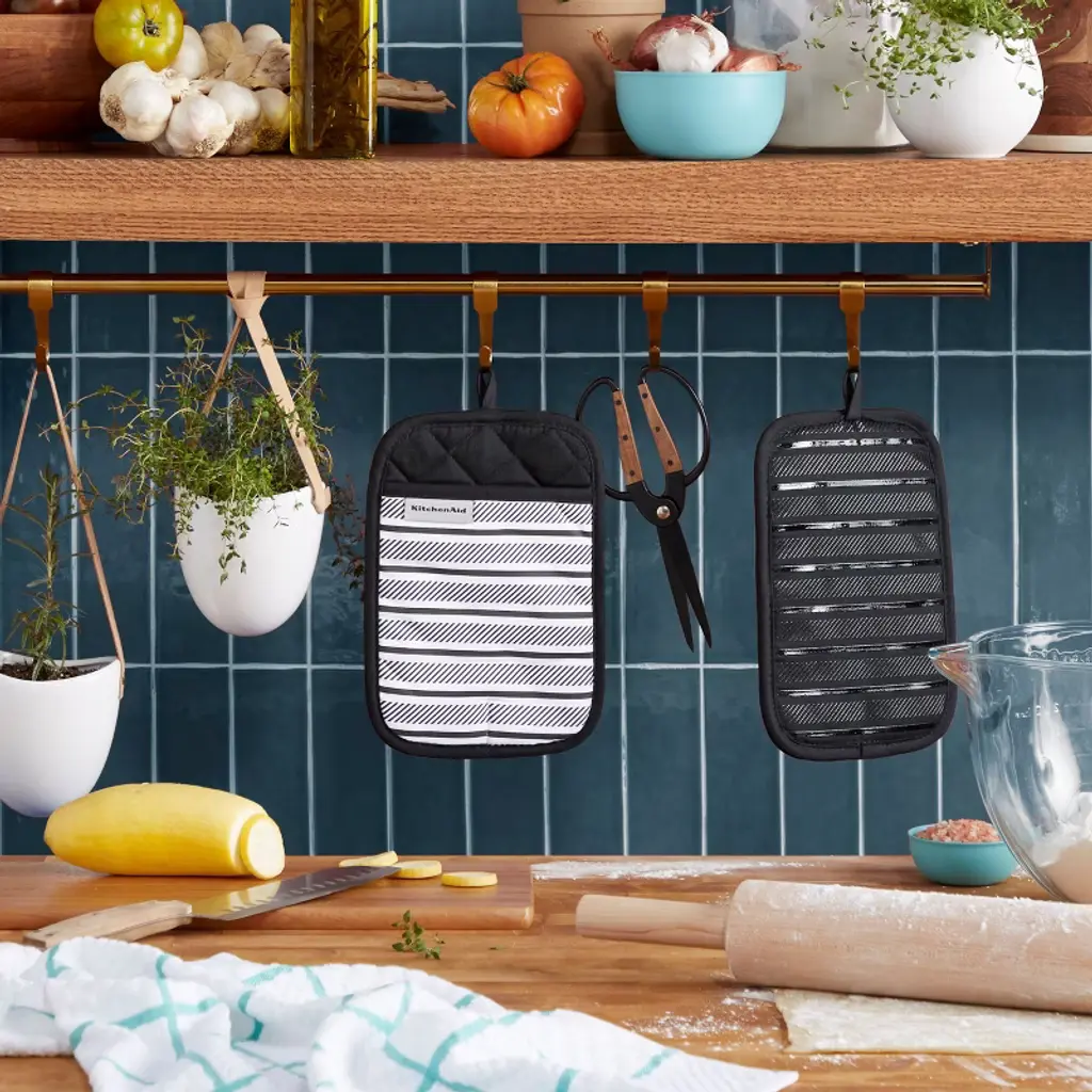 Kitchenaid Albany Pot Holder 2-pack Set, Matte Black, 7"x10"