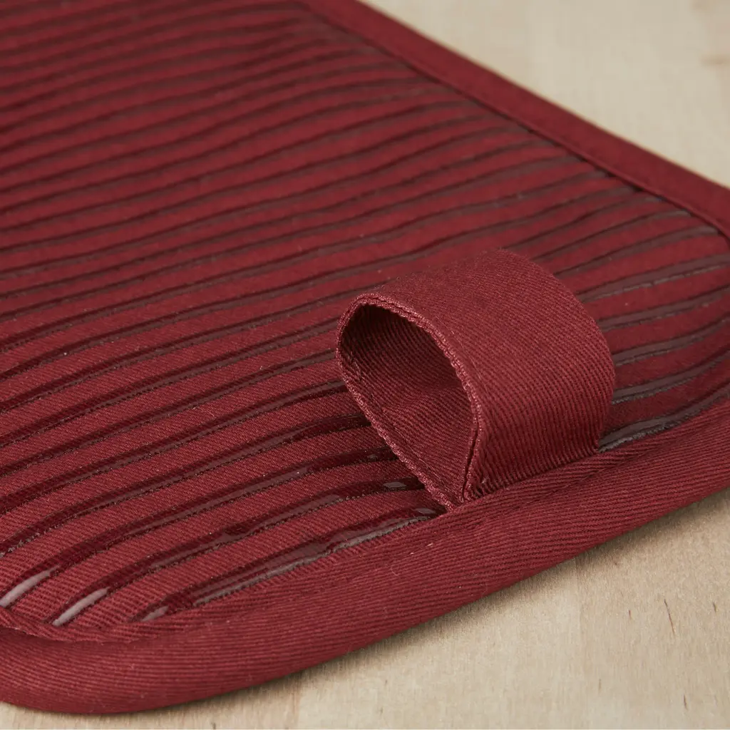 With this handy two-piece pot holder set, you can hold pots until your heart's content. Made of heavy-duty cotton with a polyester lining that offers comfort and insulation, this fabulous twosome entails a couple of tough pot holders, each with clear printed silicone grips to ensure your grasp on your meal.Features: