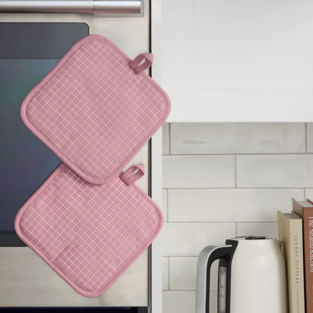 Kitchenaid Gourmet Series Gridlines Pot Holders 2-pack Set, Heat Resistant Up To 600°f, Soft Silicone Grip, Magnetic Cuff, Dried Rose, 8"x8"