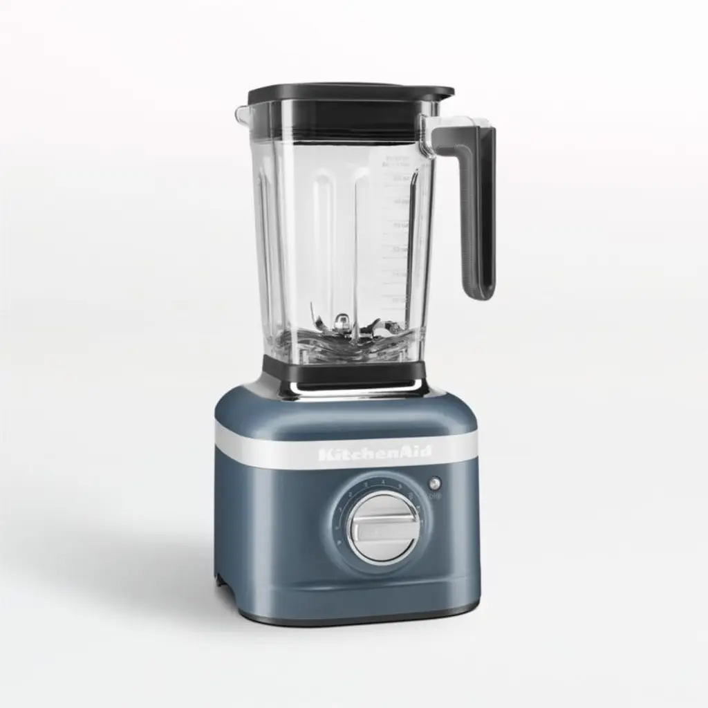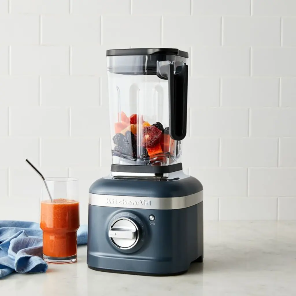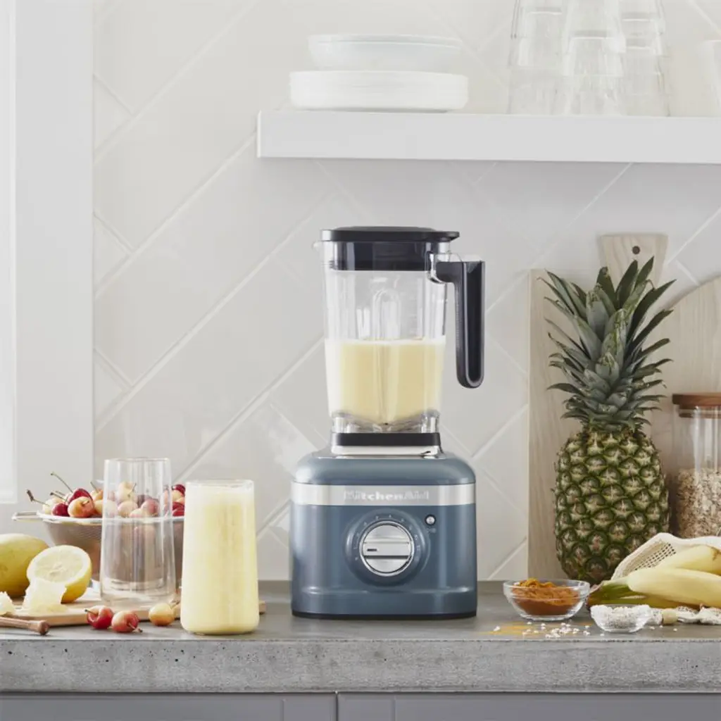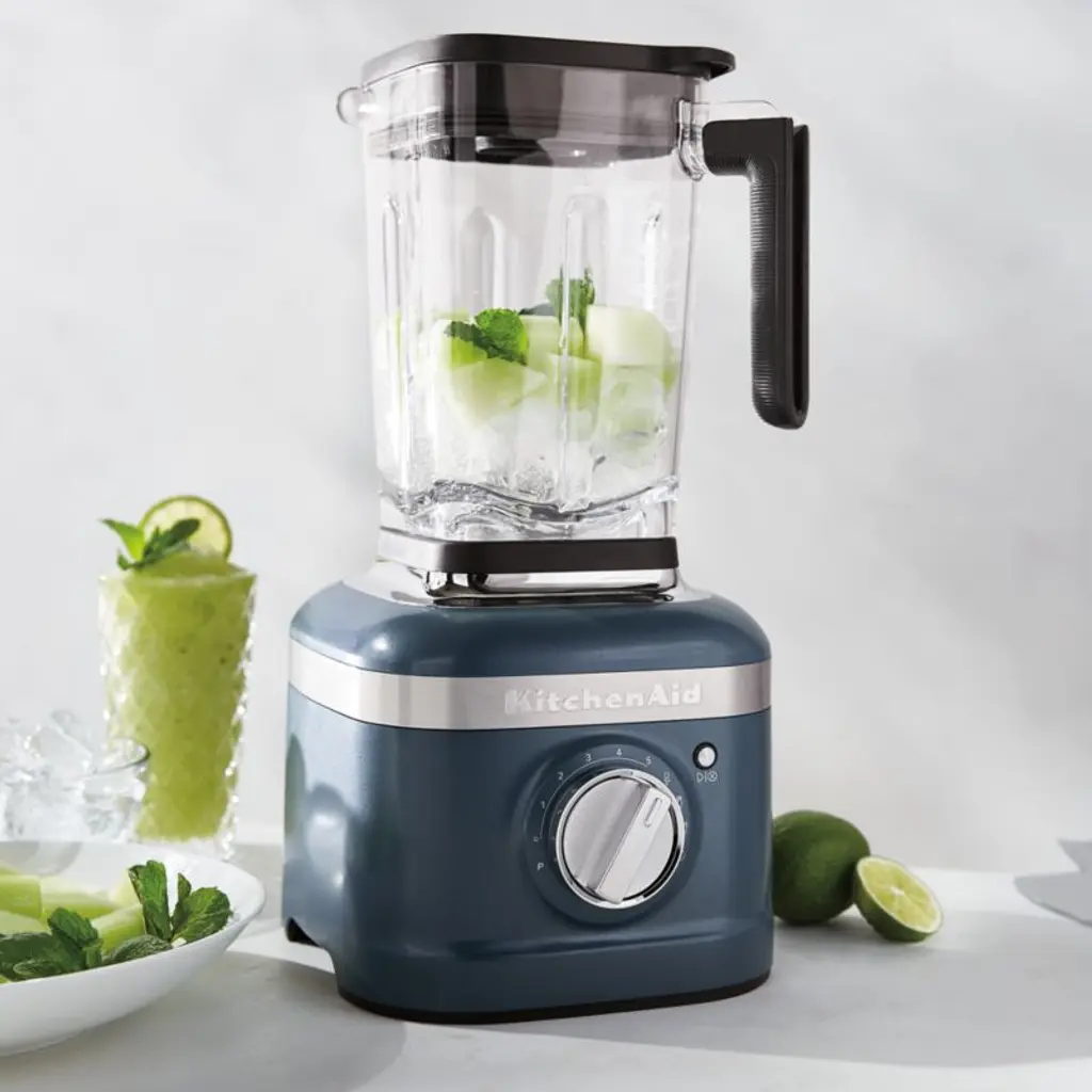 Equipped with a powerful motor and uniquely asymmetrical stainless steel blade, this blender gets perfectly smooth results out of even the toughest ingredients such as chia seeds, kale and carrots. Intelligent motor control senses the contents of the pitcher, maintaining the ideal speed to power through them effectively. The ingenious Soft Start feature prevents splatters by starting the motor gently, pulling ingredients into the blade and gradually increasing speed to the desired setting. Three presets crush ice, mix smoothies and blend festive frozen drinks such as Cucumber Margaritas, Pineapple Daiquiris and Piña Coladas. Clad in a lush shade of blue, the five-speed blender fits right in amongst modern appliances.KitchenAid has been creating high-quality kitchenware for over a century.Need help choosing? View our KitchenAid Blender comparison chart.View all KitchenAid products