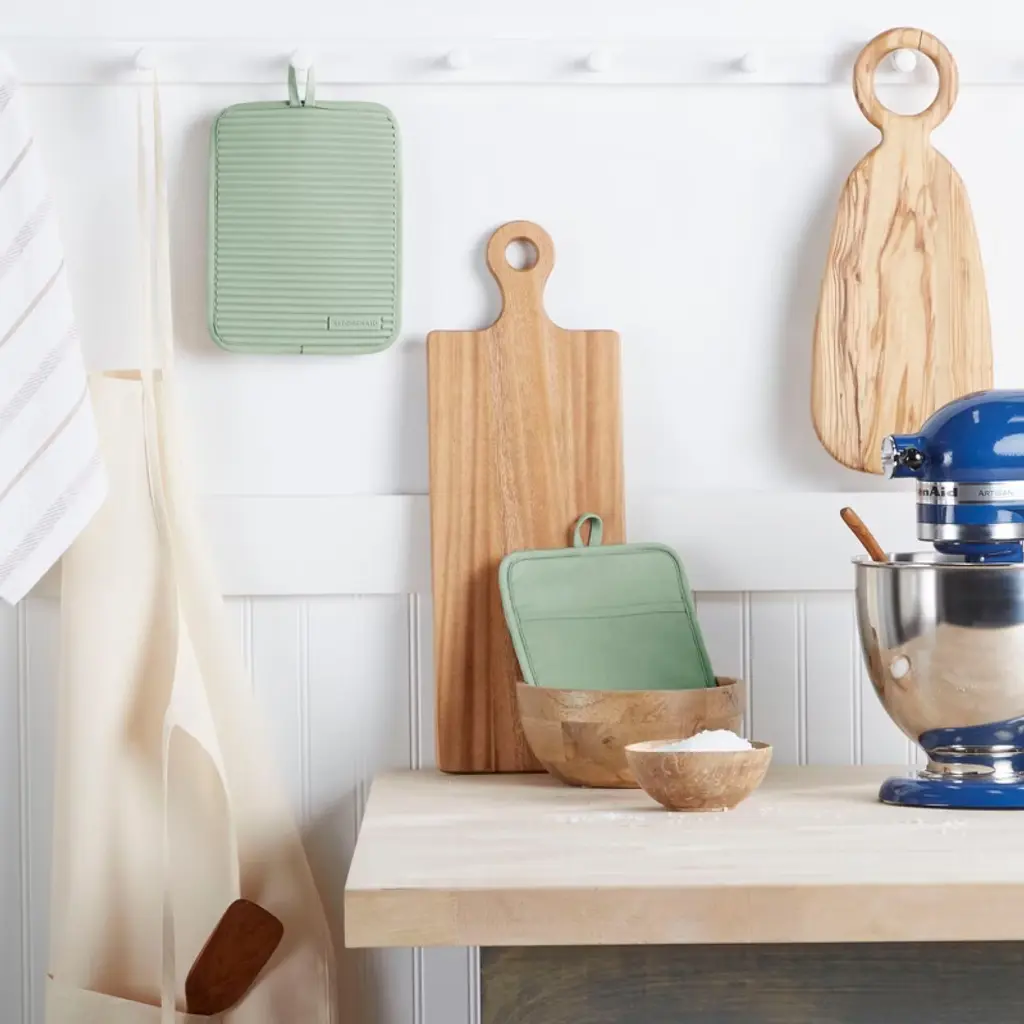 Kitchenaid Ribbed Soft Silicone Pot Holder 2-pack Set, Pistachio Green, 7"x9"